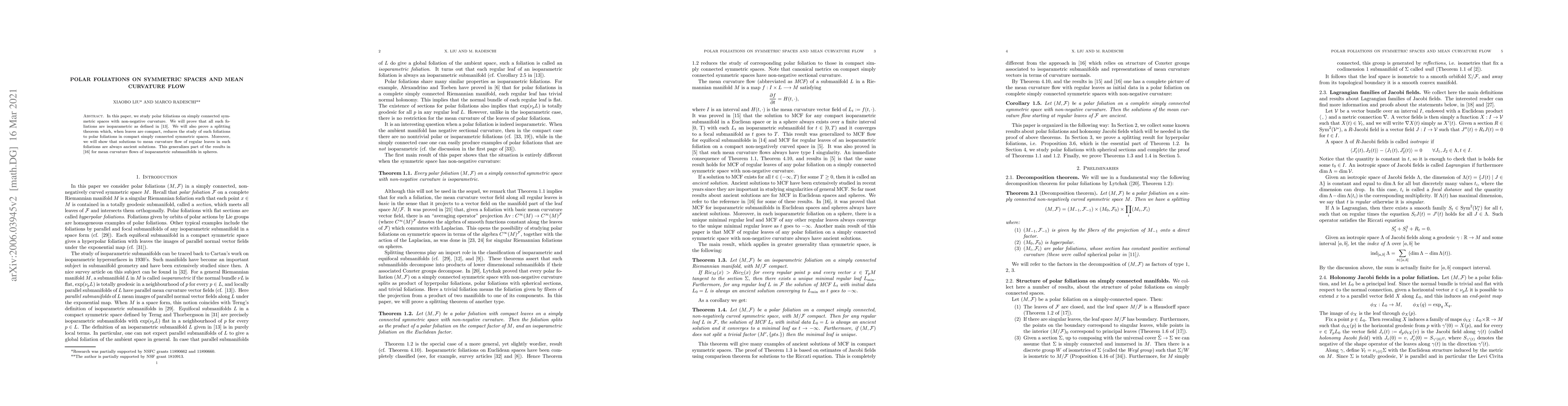 This paper proves that polar foliations on symmetric spaces with non-negative curvature are isoparametric and establishes a splitting theorem for their study. It also demonstrates that mean curvature flow solutions on regular leaves of these foliations are ancient, extending previous results for isoparametric submanifolds in spheres.