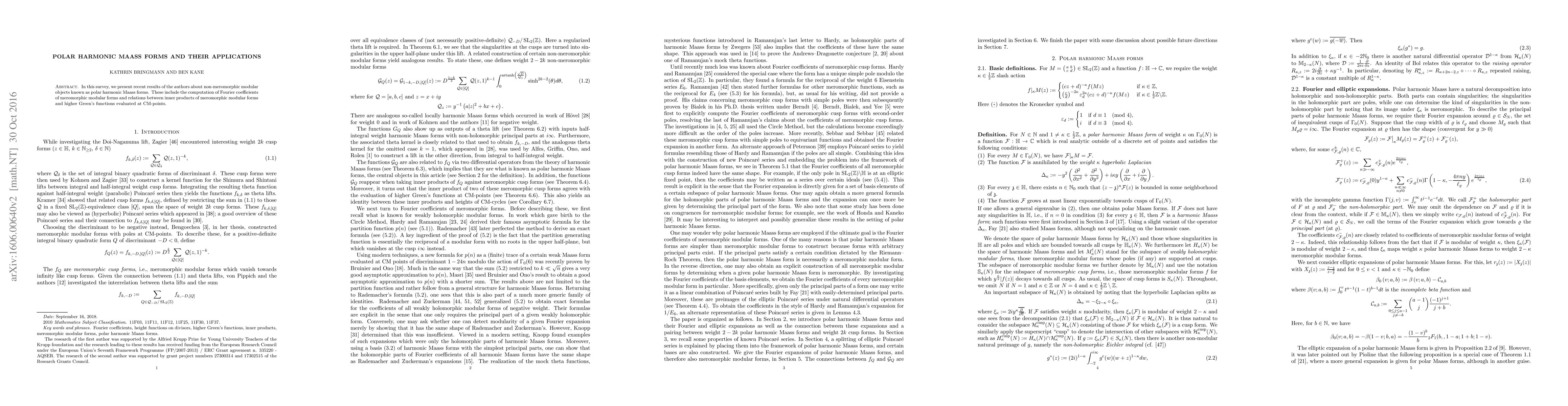 Summary: This survey explores polar harmonic Maass forms, non-meromorphic modular objects, detailing their Fourier coefficients computation and connections to inner products of meromorphic modular forms and higher Green's functions at CM-points.