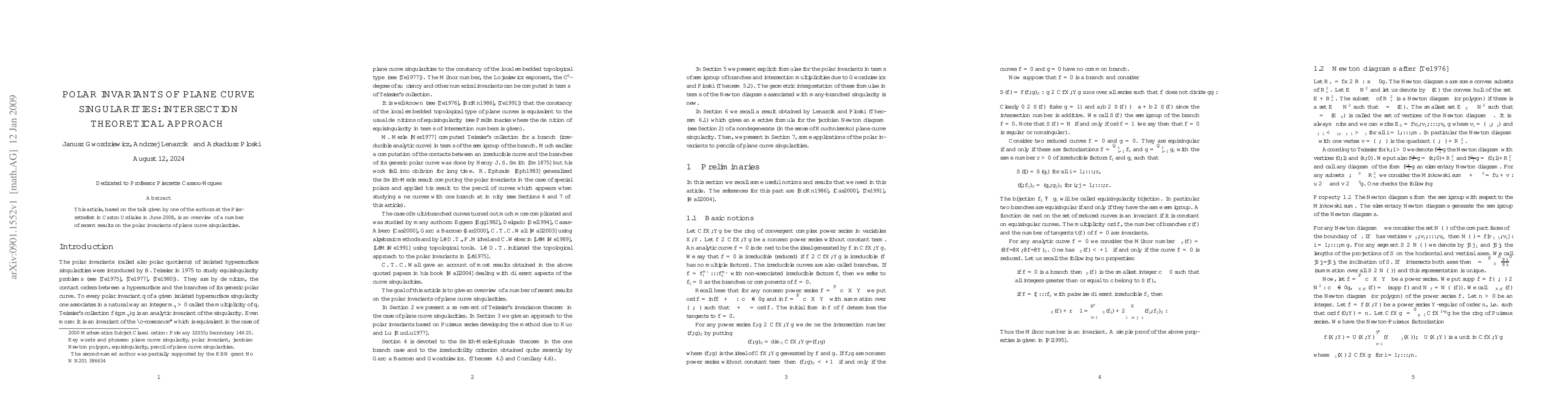 Summary: This paper provides an overview of recent findings on the polar invariants of plane curve singularities, utilizing an intersection theoretical approach. It discusses the implications and applications of these invariants in the context of algebraic geometry.