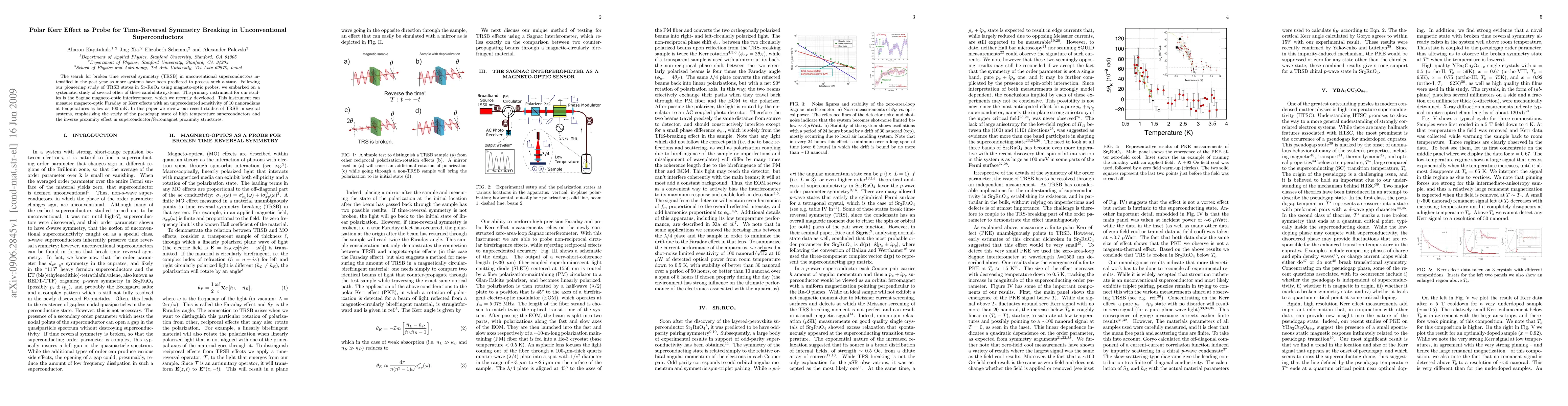 This paper reviews the use of the polar Kerr effect measured via a highly sensitive Sagnac interferometer to detect time-reversal symmetry breaking in unconventional superconductors, focusing on high-temperature superconductors and superconductor/ferromagnet interfaces.