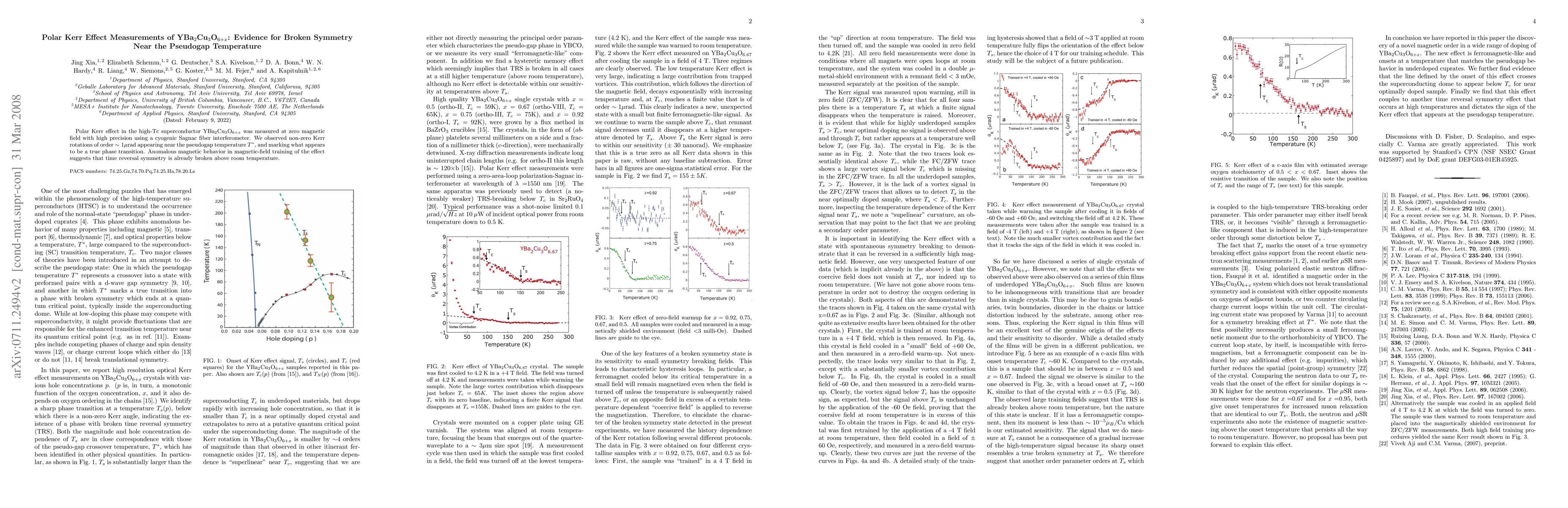 This study uses the polar Kerr effect to measure YBa2Cu3O6+x at zero magnetic field, revealing non-zero Kerr rotations near the pseudogap temperature $T^*$, indicating a potential phase transition. The observed anomalous magnetic behavior suggests that time reversal symmetry may be broken even above room temperature.