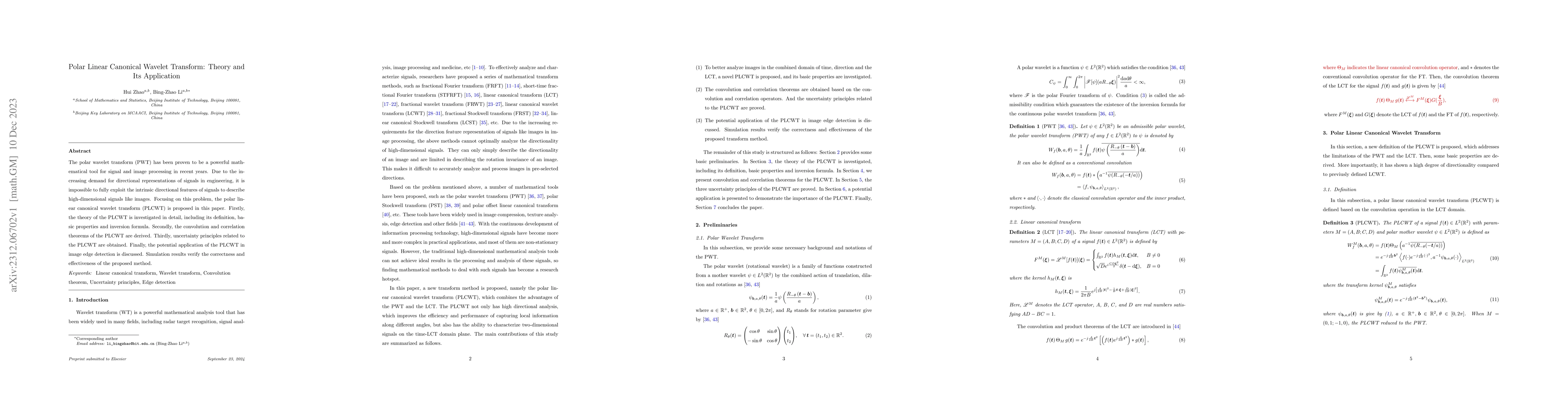 This paper introduces the polar linear canonical wavelet transform (PLCWT) for enhanced directional signal representation, detailing its theory, properties, and inversion formula. It also explores its application in image edge detection, supported by simulation results confirming its effectiveness.
