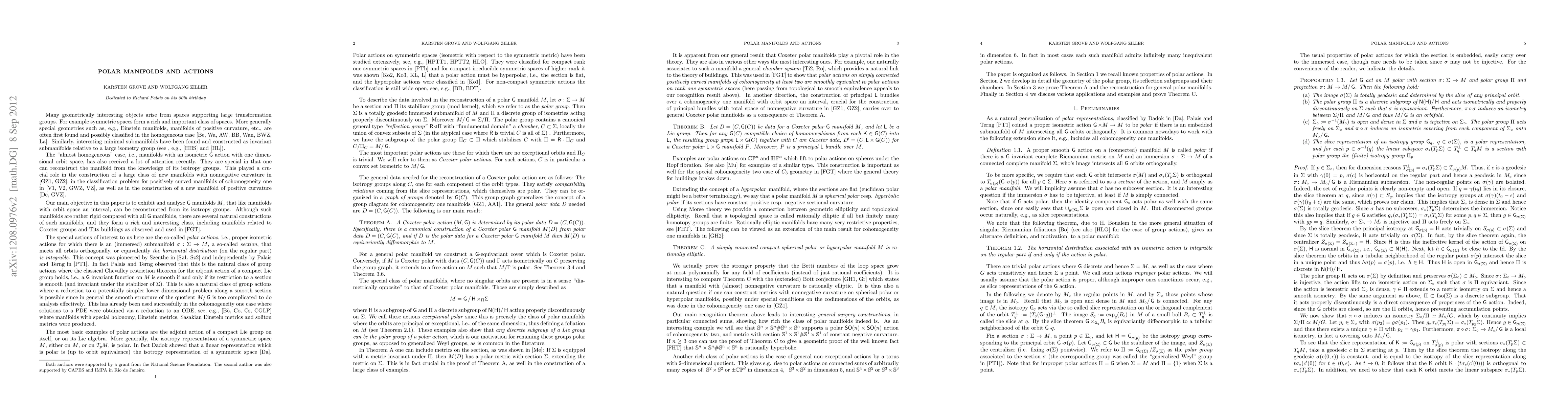 This paper explores polar group actions where an immersed submanifold intersects all orbits orthogonally. It generalizes the construction of cohomogeneity manifolds by prescribing isotropy groups along a fundamental domain, providing numerous examples and linking the section's topology to that of the manifold.