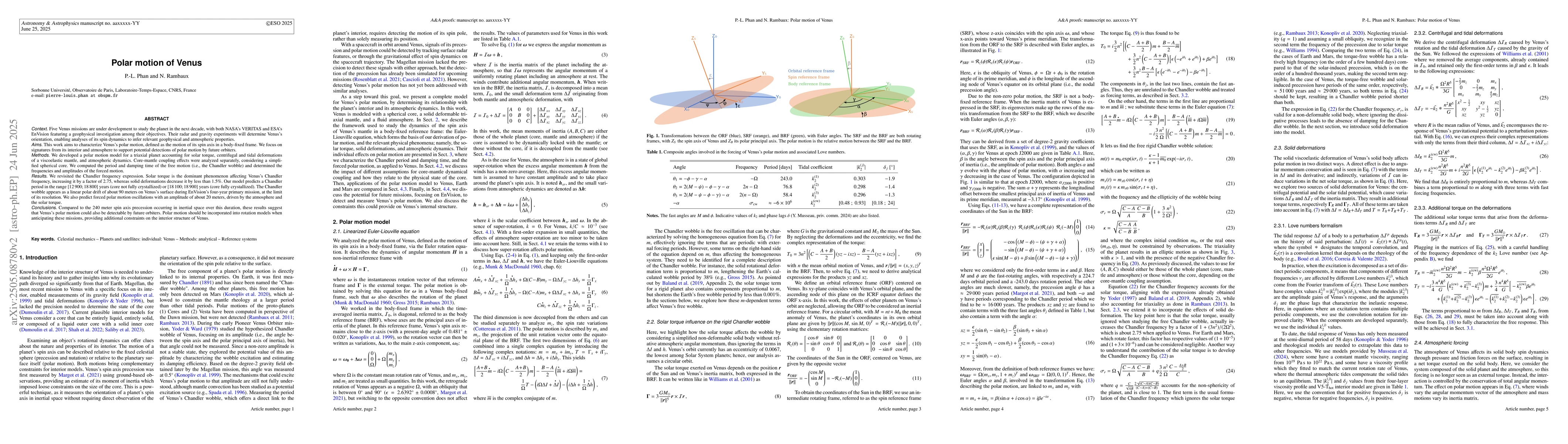 The paper presents a comprehensive polar motion model for Venus, accounting for various internal and external factors, providing expressions valid for both slowly and rapidly rotating terrestrial planets.