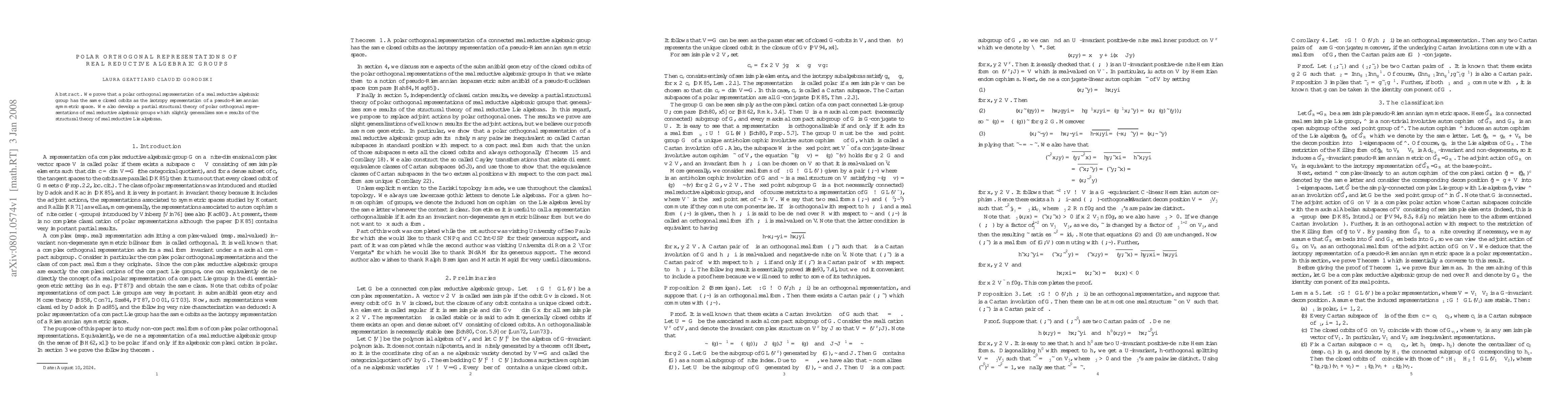 Summary: This paper proves that polar orthogonal representations of real reductive algebraic groups share closed orbits with the isotropy representation of pseudo-Riemannian symmetric spaces and develops a generalized structural theory for these representations.
