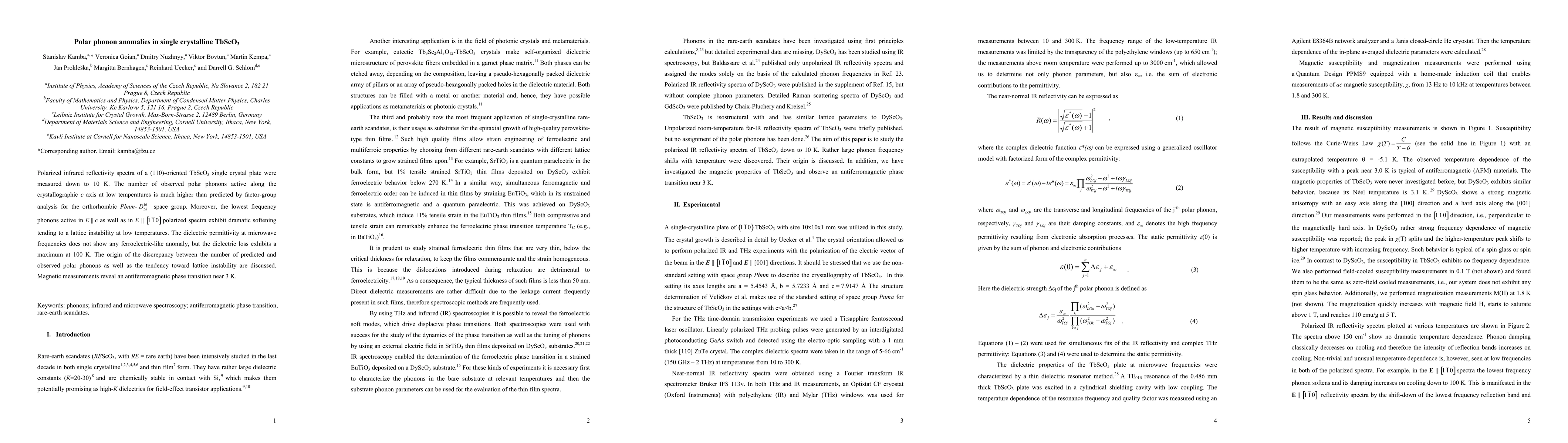 Polarized infrared reflectivity spectra of a (110)-oriented TbScO3 single crystal plate were measured down to 10 K. The number of observed polar phonons active along the crystallographic c axis at low temperatures is much higher than predicted by factor-group analysis for the orthorhombic Pbnm space group. Moreover, the lowest frequency phonons active in E||c as well as in E||[1-10] polarized spectra exhibit dramatic softening tending to a lattice instability at low temperatures. The dielectric permittivity at microwave frequencies does not show any ferroelectric-like anomaly, but the dielectric loss exhibits a maximum at 100 K. The origin of the discrepancy between the number of predicted and observed polar phonons as well as the tendency toward lattice instability are discussed. Magnetic measurements reveal an antiferromagnetic phase transition near 3 K.