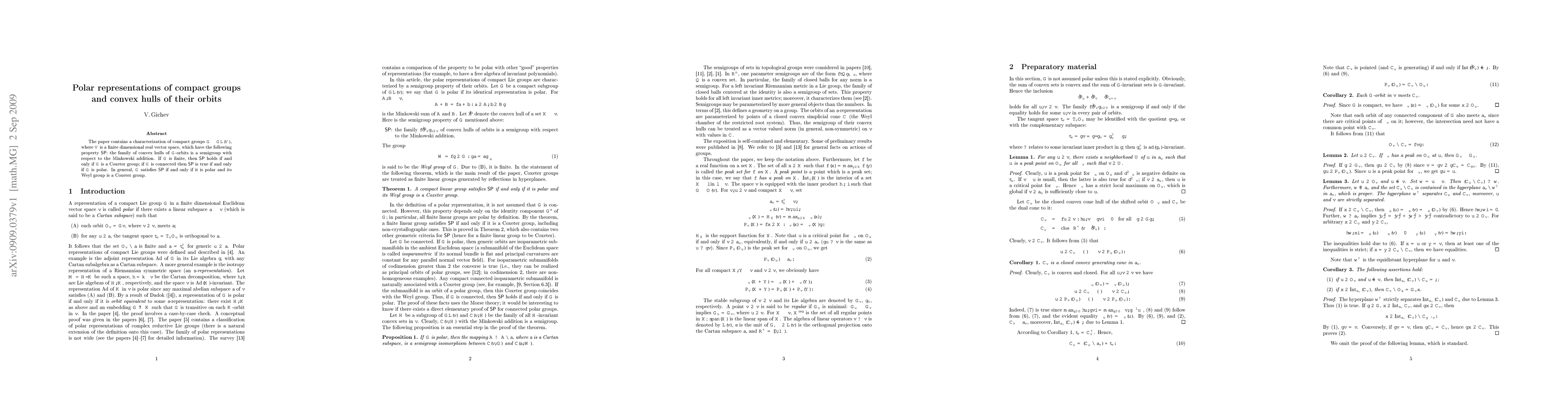 The paper contains a characterization of compact groups $G\subseteq\GL(V)$, where $V$ is a finite dimensional real vector space, which have the following property \SP{}: the family of convex hulls of $G$-orbits is a semigroup with respect to the Minkowski addition. If $G$ is finite, then \SP{} holds if and only if $G$ is a Coxeter group; if $G$ is connected then \SP{} is true if and only if $G$ is polar. In general, $G$ satisfies \SP{} if and only if it is polar and its Weyl group is a Coxeter group.