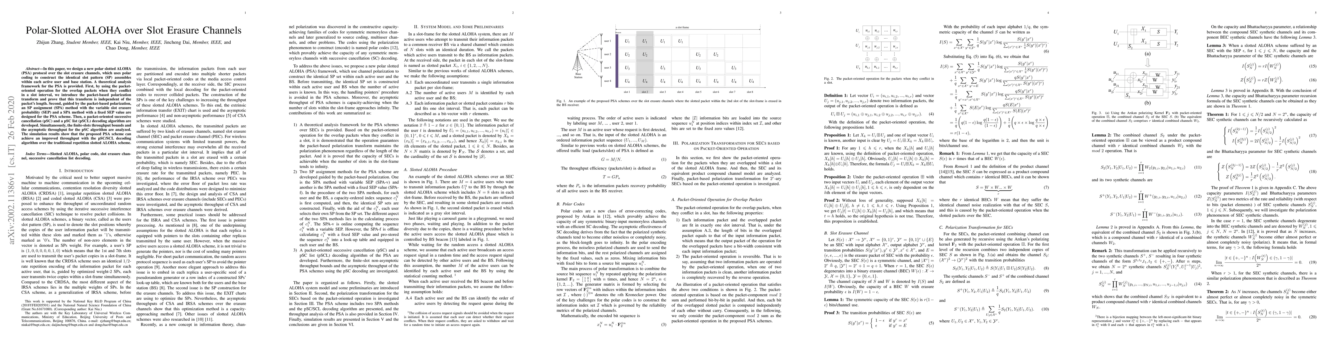 This paper proposes a polar slotted ALOHA (PSA) protocol over slot erasure channels, utilizing polar coding for identical slot pattern assembles. The study introduces packet-based polarization and develops packet-oriented successive cancellation decoding algorithms, achieving improved throughput compared to traditional schemes.