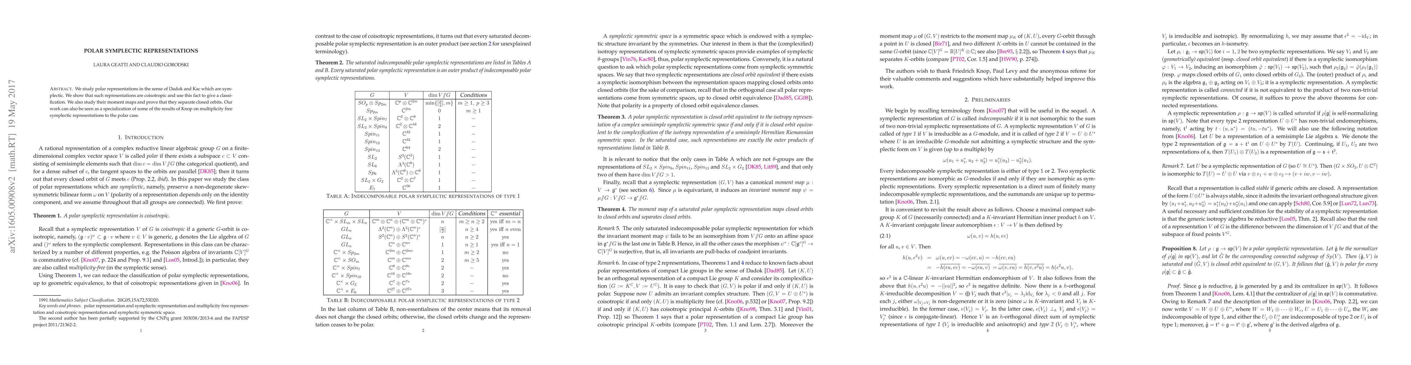 This paper classifies polar symplectic representations, demonstrating their coisotropic nature and analyzing their moment maps, which separate closed orbits. The study builds on Dadok and Kac's work and specializes results from Knop on multiplicity-free symplectic representations to the polar case.
