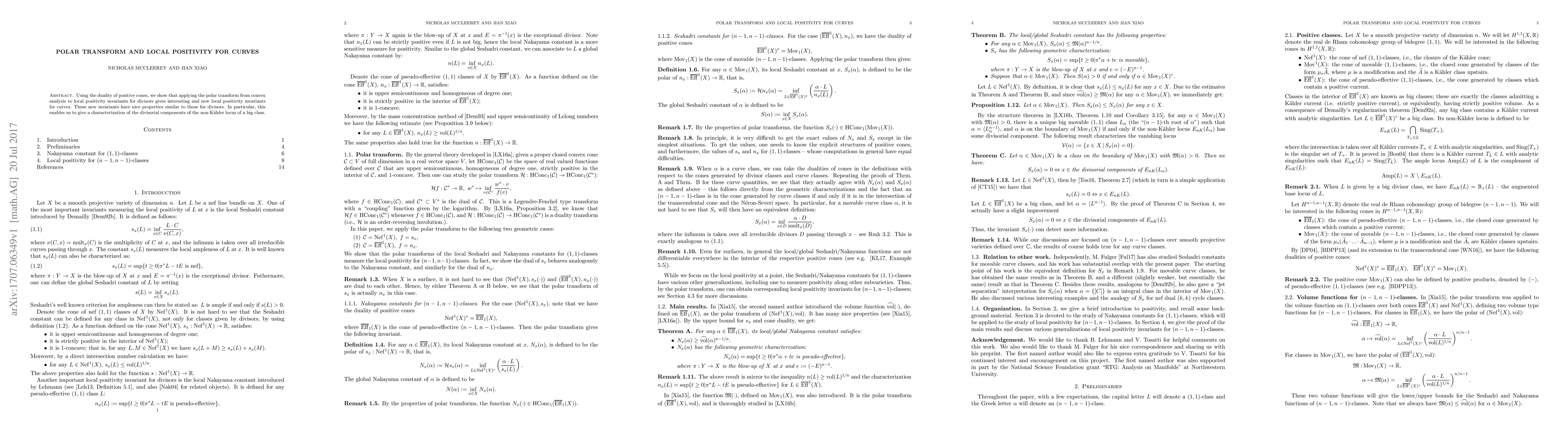 Using the duality of positive cones, we show that applying the polar transform from convex analysis to local positivity invariants for divisors gives interesting and new local positivity invariants for curves. These new invariants have nice properties similar to those for divisors. In particular, this enables us to give a characterization of the divisorial components of the non-Kahler locus of a big class.