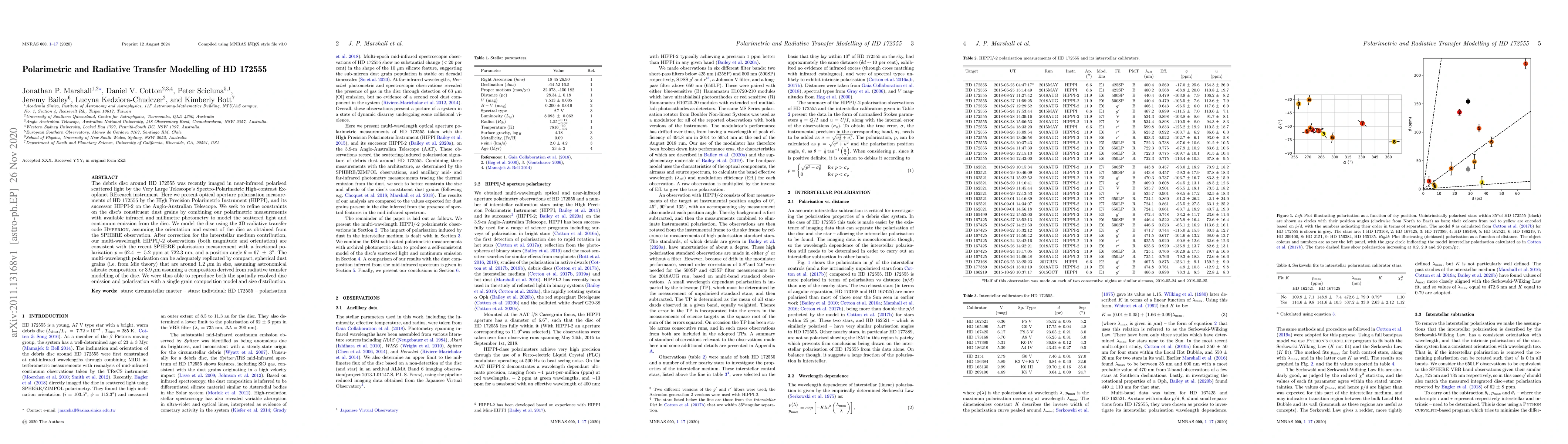 Scientists studied the debris disc of HD 172555 using polarimetric and radiative transfer modeling, finding that compact dust grains about 1.2 μ m in size can explain both the disc's emission and polarization patterns.