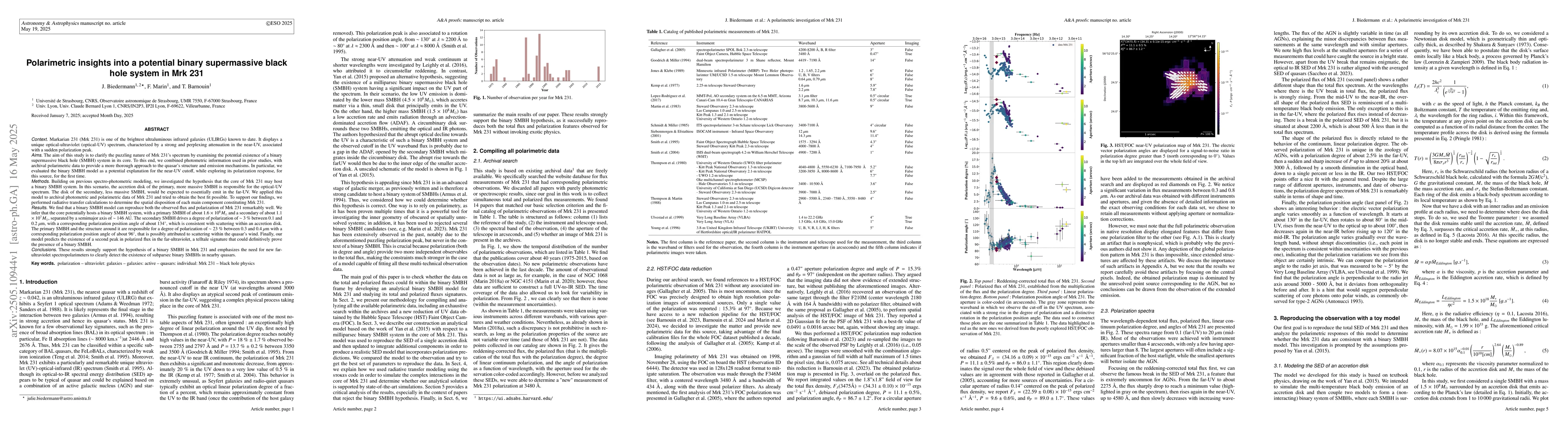 The study applied a binary supermassive black hole (SMBH) model to archival photometric and polarimetric data of Mrk 231, supported by radiative transfer calculations to determine the spatial disposition of its components.