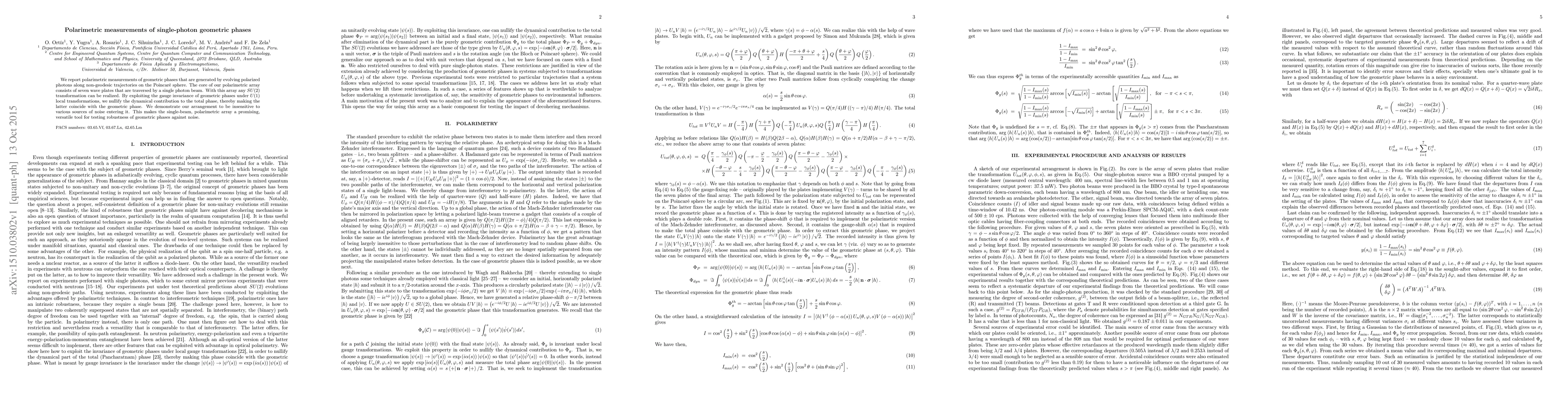 We report polarimetric measurements of geometric phases that are generated by evolving polarized photons along non-geodesic trajectories on the Poincar\'e sphere. The core of our polarimetric array consists of seven wave plates that are traversed by a single photon beam. With this array any SU(2) transformation can be realized. By exploiting the gauge invariance of geometric phases under U(1) local transformations, we nullify the dynamical contribution to the total phase, thereby making the latter coincide with the geometric phase. We demonstrate our arrangement to be insensitive to various sources of noise entering it. This makes the single-beam, polarimetric array a promising, versatile tool for testing robustness of geometric phases against noise.