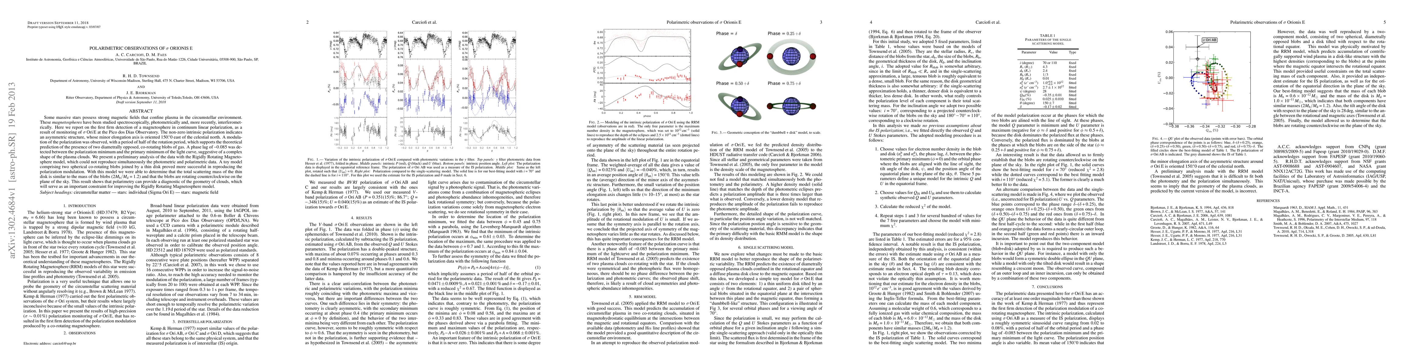 Some massive stars possess strong magnetic fields that confine plasma in the circumstellar environment. These \textit{magnetospheres} have been studied spectroscopically, photometrically and, more recently, interferometrically. Here we report on the first firm detection of a magnetosphere in continuum linear polarization, as a result of monitoring of $\sigma$\,Ori\,E at the Pico dos Dias Observatory. {The non-zero intrinsic polarization indicates an asymmetric structure, whose minor elongation axis is oriented $150\fdg0$ east of the celestial north.} A modulation of the polarization was observed, with a period of half of the rotation period, which supports the theoretical prediction of the presence of two diametrally opposed, co-rotating blobs of gas. A phase lag of -0.085 was detected between the polarization minimum and the primary minimum of the light curve, suggestive of a complex shape of the plasma clouds. We present a preliminary analysis of the data with the Rigidly Rotating Magnetosphere model, which could not reproduce simultaneously the photometric and polarimetric data. A toy model comprising two spherical co-rotating blobs {joined by a thin disk} proved more successful in reproducing the polarization modulation. {With this model we were able to determine that the total scattering mass of the thin disk is similar to the mass of the blobs ($2M_{\rm b}/M_{\rm d}=1.2$) and that the blobs are rotating counterclockwise on the plane of the sky.} This result shows that polarimetry can provide a diagnostic of the geometry of clouds, which will serve as an important constraint for {improving} the Rigidly Rotating Magnetosphere model.