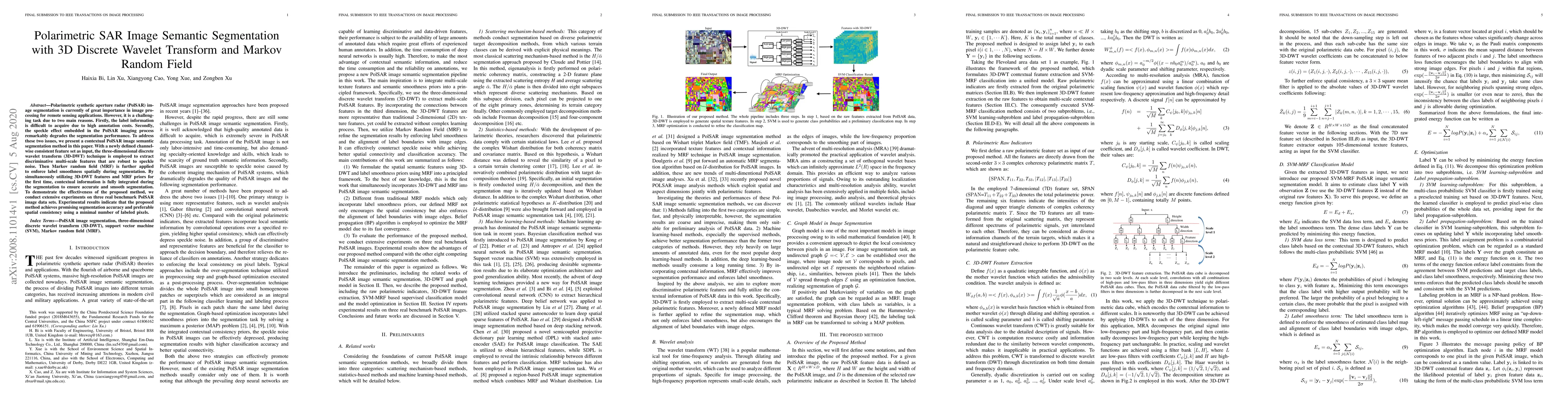 This paper proposes a new method for polarimetric synthetic aperture radar image semantic segmentation that uses 3D discrete wavelet transform and Markov random field to extract robust features and enforce label smoothness, achieving promising accuracy and spatial consistency with minimal labeled pixels.
