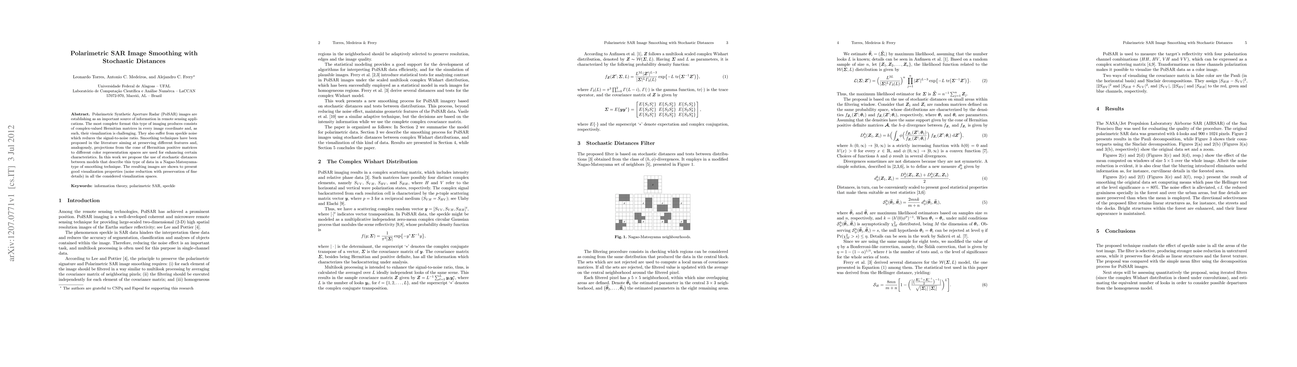 This paper presents a novel smoothing technique for Polarimetric Synthetic Aperture Radar (PolSAR) images using stochastic distances in a Nagao-Matsuyama-type framework, achieving effective noise reduction while preserving fine image details across various visualization spaces.