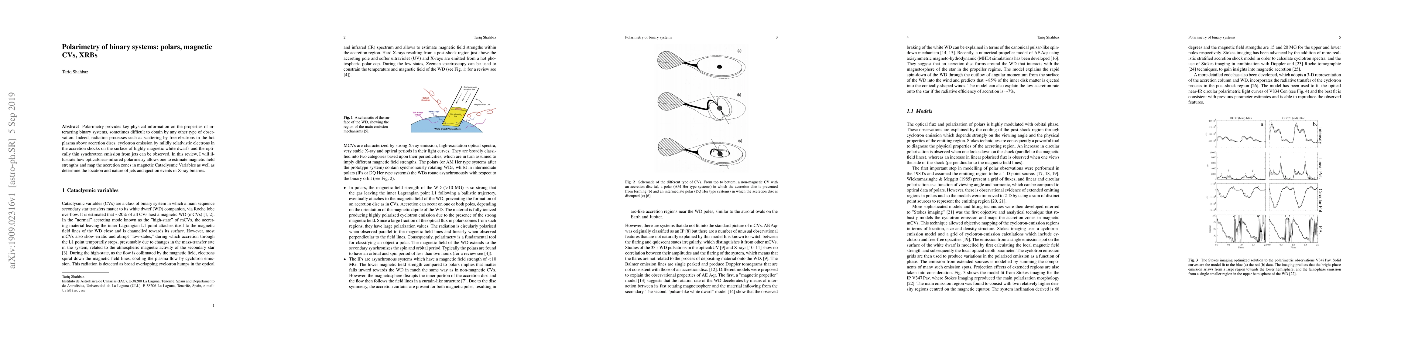 This paper reviews the use of polarimetry in studying binary systems, focusing on polars, magnetic Cataclysmic Variables, and X-ray binaries. It highlights how optical/near-infrared polarimetry can estimate magnetic field strengths, map accretion zones, and determine the nature of jets and ejection events.