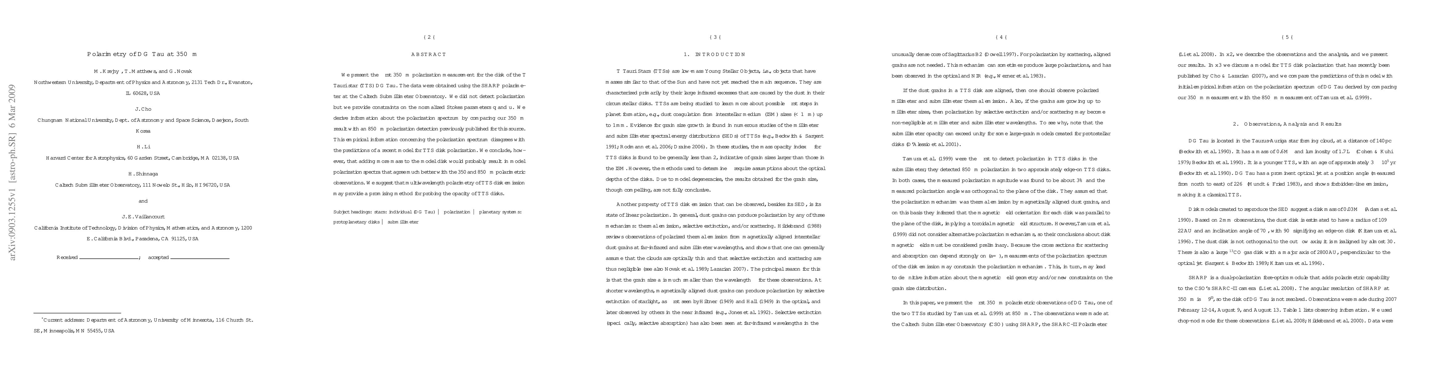 This study reports the first 350 micron polarization measurement for the T Tauri star DG Tau's disk, finding no detectable polarization but providing constraints on q and u. Comparison with previous 850 micron data reveals discrepancies with current models, suggesting that increased mass in the model could better match observations.
