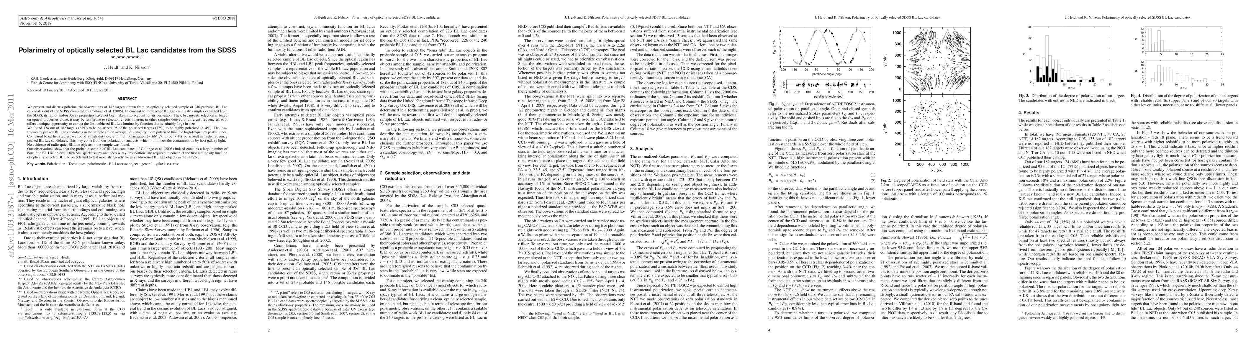 This study presents polarimetric observations of 182 optically selected BL Lac candidates from the SDSS, finding 68% to be polarized, with 77% of these highly polarized. The results suggest a high duty cycle in high polarization for high-frequency peaked BL Lac candidates, indicating a robust sample of BL Lac objects. Further high S/N spectroscopy and X-ray observations are needed to construct the first luminosity function and to identify any radio-quiet BL Lac objects.