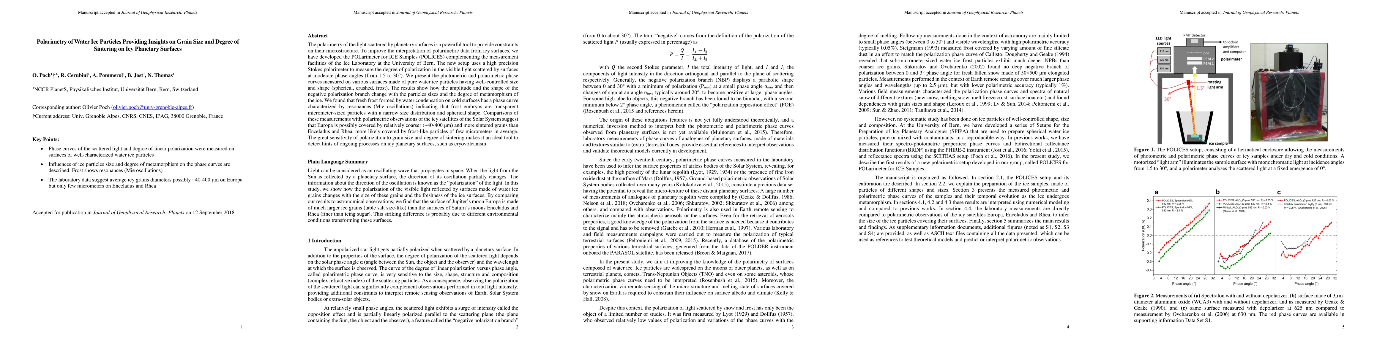 This study develops a high-precision polarimeter to measure the polarization of light scattered by water ice particles, revealing insights into grain size and sintering on icy planetary surfaces. The results indicate that polarization is highly sensitive to these factors, suggesting Europa's surface may have larger, more sintered grains compared to Enceladus and Rhea, which likely have finer particles.