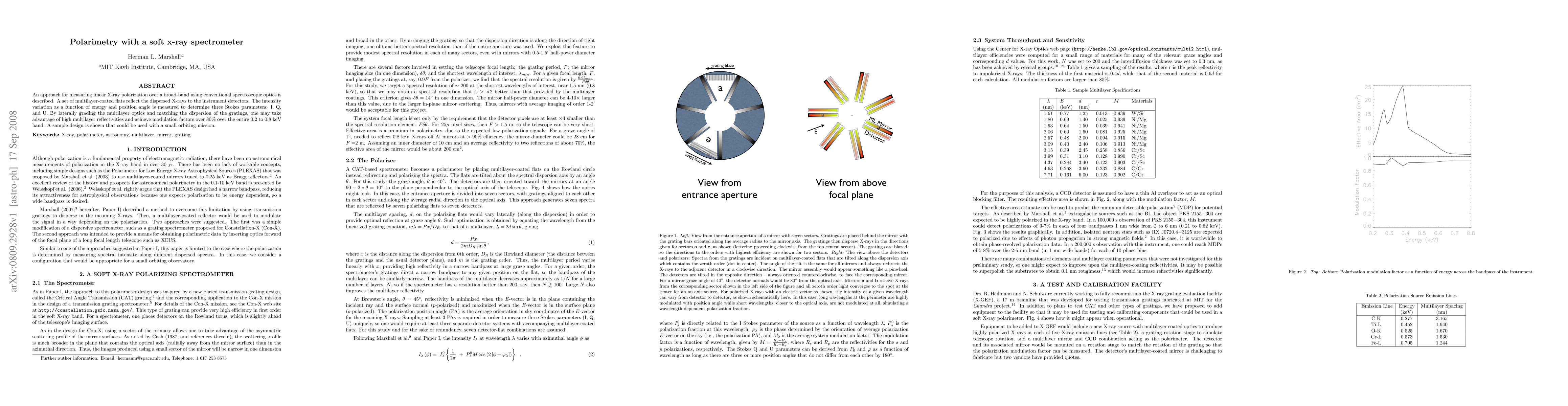 An approach for measuring linear X-ray polarization over a broad-band using conventional spectroscopic optics is described. A set of multilayer-coated flats reflect the dispersed X-rays to the instrument detectors. The intensity variation as a function of energy and position angle is measured to determine three Stokes parameters: I, Q, and U. By laterally grading the multilayer optics and matching the dispersion of the gratings, one may take advantage of high multilayer reflectivities and achieve modulation factors over 80% over the entire 0.2 to 0.8 keV band. A sample design is shown that could be used with a small orbiting mission.