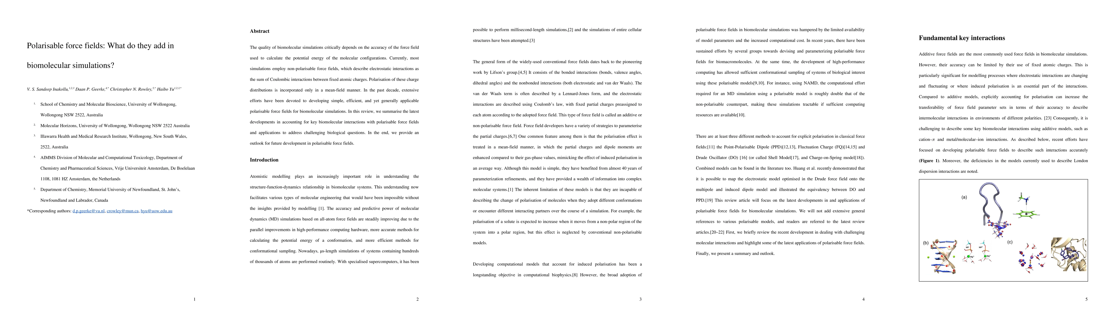 The quality of biomolecular simulations critically depends on the accuracy of the force field used to calculate the potential energy of the molecular configurations. Currently, most simulations employ non-polarisable force fields, which describe electrostatic interactions as the sum of Coulombic interactions between fixed atomic charges. Polarization of these charge distributions is incorporated only in a mean-field manner. In the past decade, extensive efforts have been devoted to developing simple, efficient, and yet generally applicable polarisable force fields for biomolecular simulations. In this review, we summarise the latest developments in accounting for key biomolecular interactions with polarisable force fields and applications to address challenging biological questions. In the end, we provide an outlook for future development in polarisable force fields.
