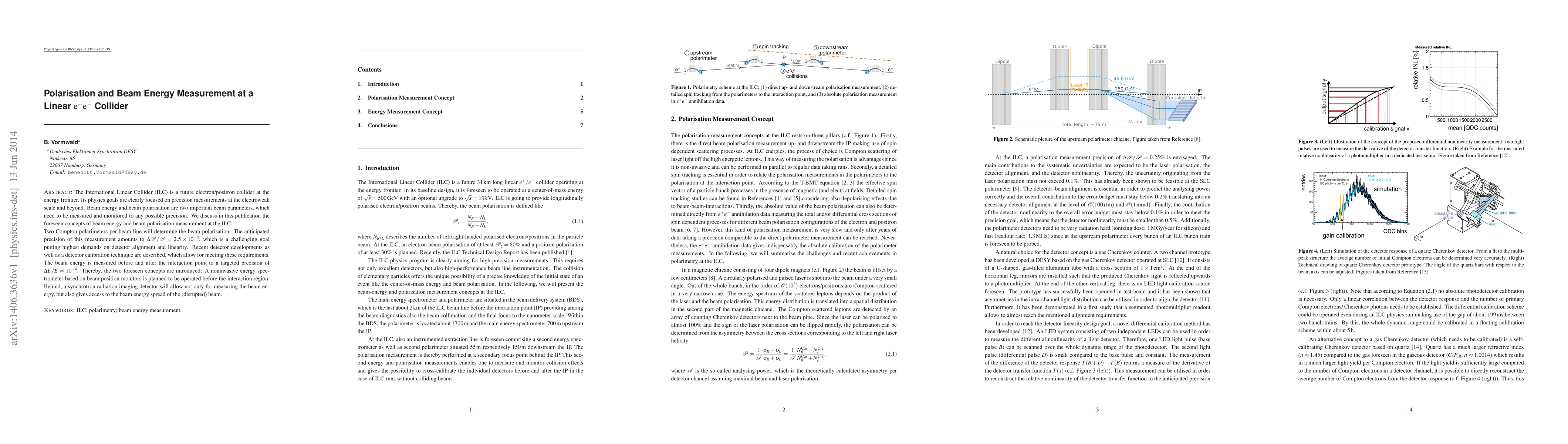 This paper discusses the measurement techniques for beam energy and polarisation at the International Linear Collider (ILC), focusing on precision monitoring. The proposed methods include Compton polarimeters for polarisation and a combination of noninvasive spectrometers and synchrotron radiation detectors for energy measurement, aiming for precision levels of $\Delta \mathcal{P} / \mathcal{P} = 2.5 \times 10^{-3}$ and $\Delta E/E = 10^{-4}$.