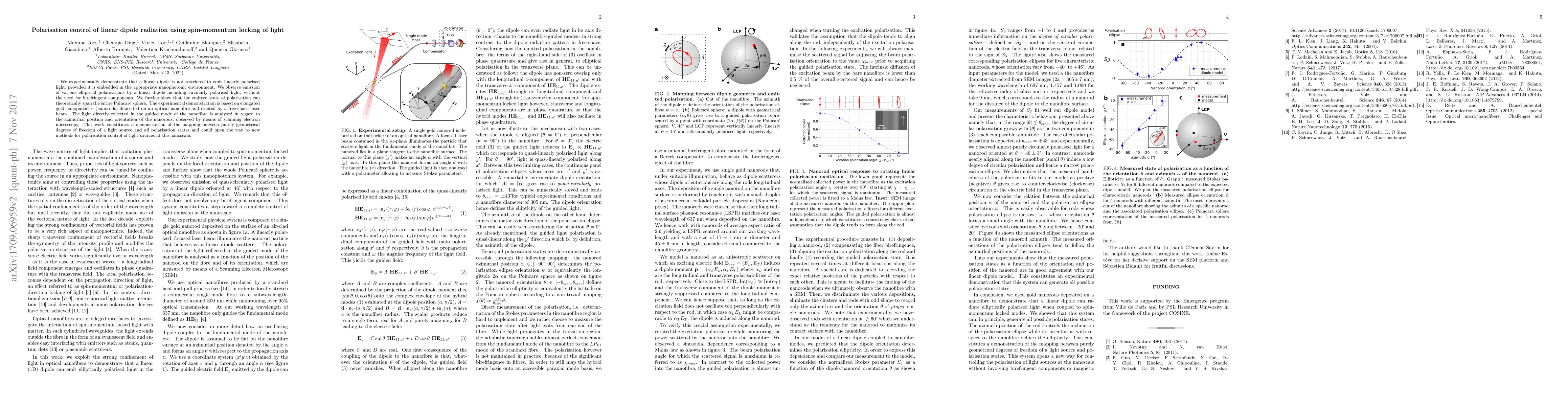 We experimentally demonstrate that a linear dipole is not restricted to emit linearly polarised light, provided it is embedded in the appropriate nanophotonic environment. We observe emission of various elliptical polarisations by a linear dipole including circularly polarised light, without the need for birefringent components. We further show that the emitted state of polarisation can theoretically span the entire Poincare sphere. The experimental demonstration is based on elongated gold nanoparticles (nanorods) deposited on an optical nanofibre and excited by a free-space laser beam. The light directly collected in the guided mode of the nanofibre is analysed in regard to the azimuthal position and orientation of the nanorods, observed by means of scanning electron microscopy. This work constitutes a demonstration of the mapping between purely geometrical degrees of freedom of a light source and all polarisation states and could open the way to new methods for polarisation control of light sources at the nanoscale.