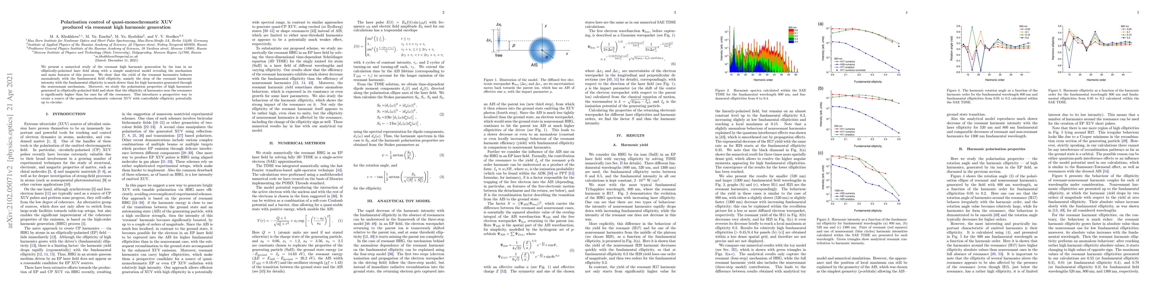We present a numerical study of the resonant high harmonic generation by tin ions in an elliptically-polarised laser field along with a simple analytical model revealing the mechanism and main features of this process. We show that the yield of the resonant harmonics behaves anomalously with the fundamental field ellipticity, namely the drop of the resonant harmonic intensity with the fundamental ellipticity is much slower than for high harmonics generated through the nonresonant mechanism. Moreover, we study the polarisation properties of high harmonics generated in elliptically-polarised field and show that the ellipticity of harmonics near the resonance is significantly higher than for ones far off the resonance. This introduces a prospective way to create a source of the quasi-monochromatic coherent XUV with controllable ellipticity potentially up to circular.