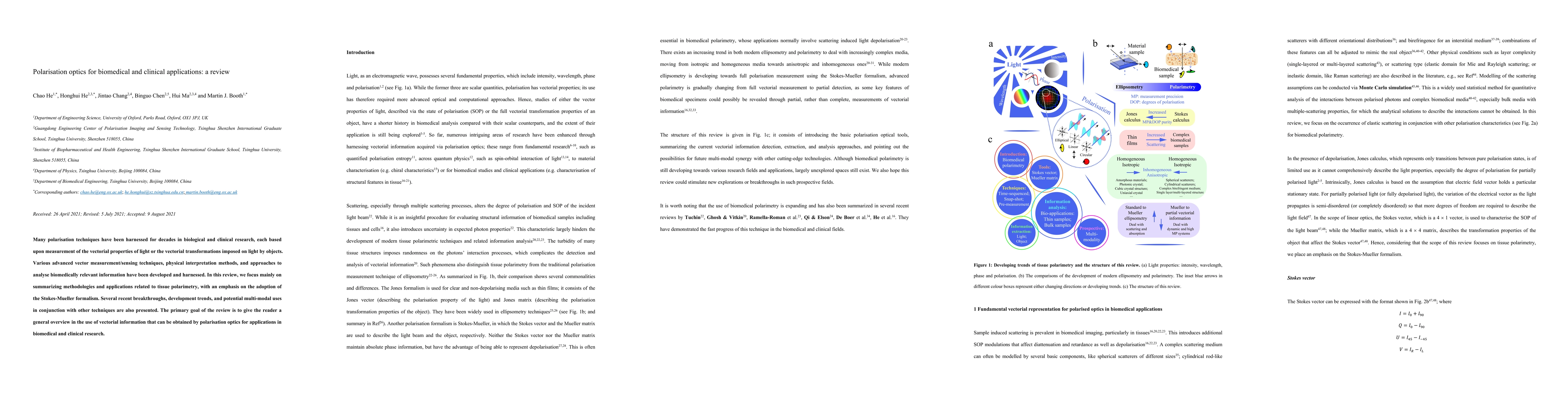This review summarizes advanced polarisation techniques and their applications in biomedical and clinical research, focusing on tissue polarimetry and the Stokes-Mueller formalism. It highlights recent breakthroughs and potential multi-modal uses in conjunction with other diagnostic methods.