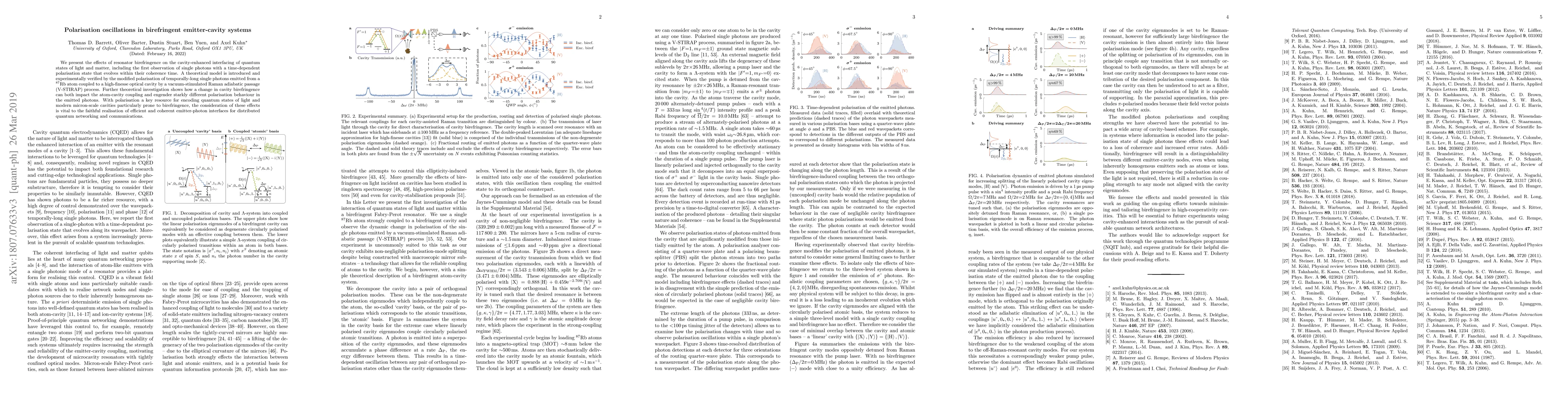 We present the effects of resonator birefringence on the cavity-enhanced interfacing of quantum states of light and matter, including the first observation of single photons with a time-dependent polarisation state that evolves within their coherence time. A theoretical model is introduced and experimentally verified by the modified polarisation of temporally-long single photons emitted from a $^{87}$Rb atom coupled to a high-finesse optical cavity by a vacuum-stimulated Raman adiabatic passage (V-STIRAP) process. Further theoretical investigation shows how a change in cavity birefringence can both impact the atom-cavity coupling and engender starkly different polarisation behaviour in the emitted photons. With polarisation a key resource for encoding quantum states of light and modern micron-scale cavities particularly prone to birefringence, the consideration of these effects is vital to the faithful realisation of efficient and coherent emitter-photon interfaces for distributed quantum networking and communications.