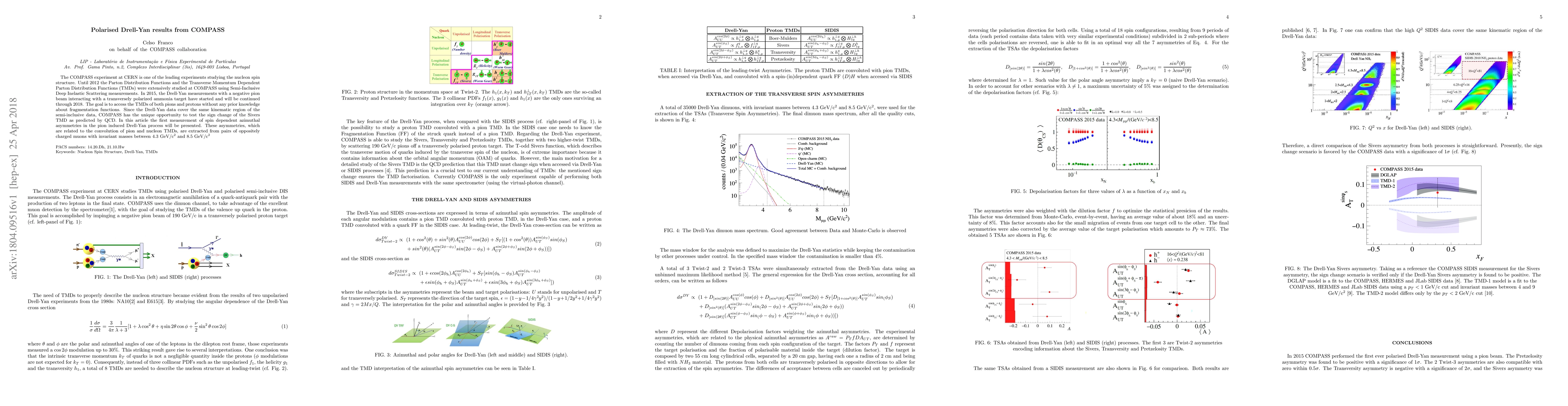 The COMPASS experiment at CERN presents the first polarized Drell-Yan results from a negative pion beam interacting with a transversely polarized ammonia target, aiming to study Transverse Momentum Dependent Parton Distribution Functions (TMDs) and test the sign change of the Sivers TMD as predicted by QCD. The results reveal spin-dependent azimuthal asymmetries in the pion-induced Drell-Yan process.
