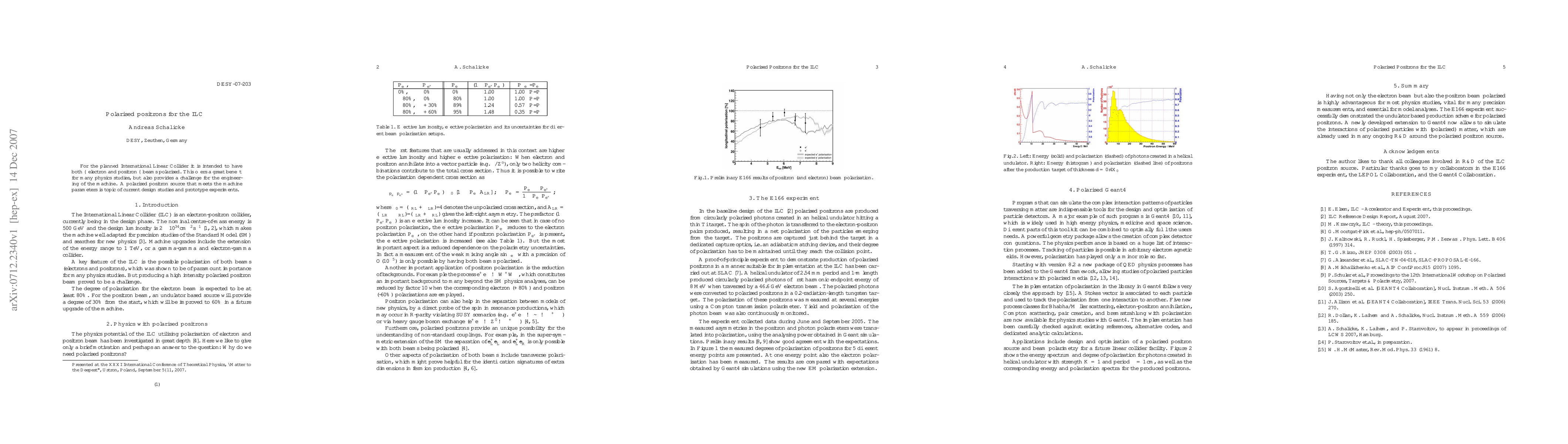 Summary: The planned International Linear Collider aims to utilize both polarised electron and positron beams, enhancing physics studies but posing engineering challenges. Current design studies focus on developing a suitable polarised positron source.