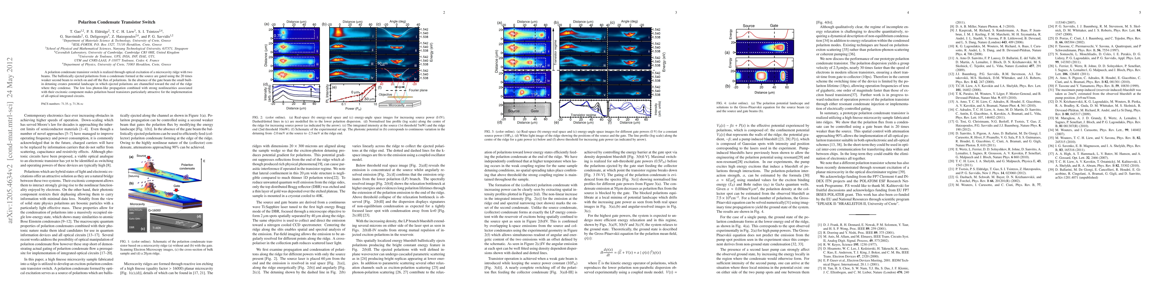 The paper demonstrates a polariton condensate transistor switch using optical excitation in a microcavity ridge, where a gate beam controls the flow of ballistically ejected polaritons, showcasing potential for low-loss, all-optical integrated circuits. The switch leverages strong nonlinearities and photon-like propagation for efficient operation.