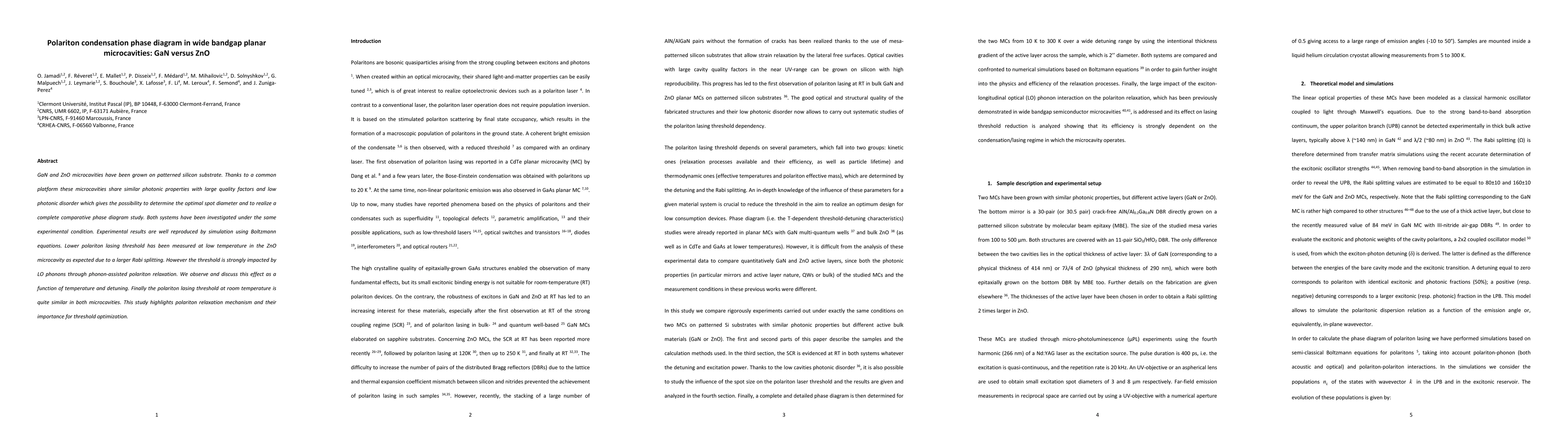 GaN and ZnO microcavities have been grown on patterned silicon substrate. Thanks to a common platform these microcavities share similar photonic properties with large quality factors and low photonic disorder which gives the possibility to determine the optimal spot diameter and to realize a complete comparative phase diagram study. Both systems have been investigated under the same experimental condition. Experimental results are well reproduced by simulation using Boltzmann equations. Lower polariton lasing threshold has been measured at low temperature in the ZnO microcavity as expected due to a larger Rabi splitting. However the threshold is strongly impacted by LO phonons through phonon-assisted polariton relaxation. We observe and discuss this effect as a function of temperature and detuning. Finally the polariton lasing threshold at room temperature is quite similar in both microcavities. This study highlights polariton relaxation mechanism and their importance for threshold optimization.