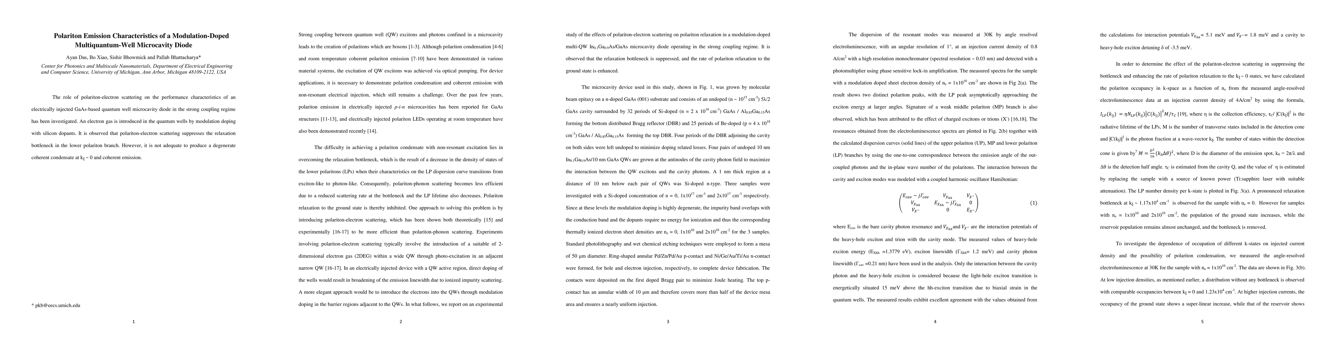 The study investigates the impact of polariton-electron scattering on the performance of a modulation-doped GaAs quantum well microcavity diode. Polariton-electron scattering alleviates the relaxation bottleneck but fails to generate a coherent condensate and coherent emission.