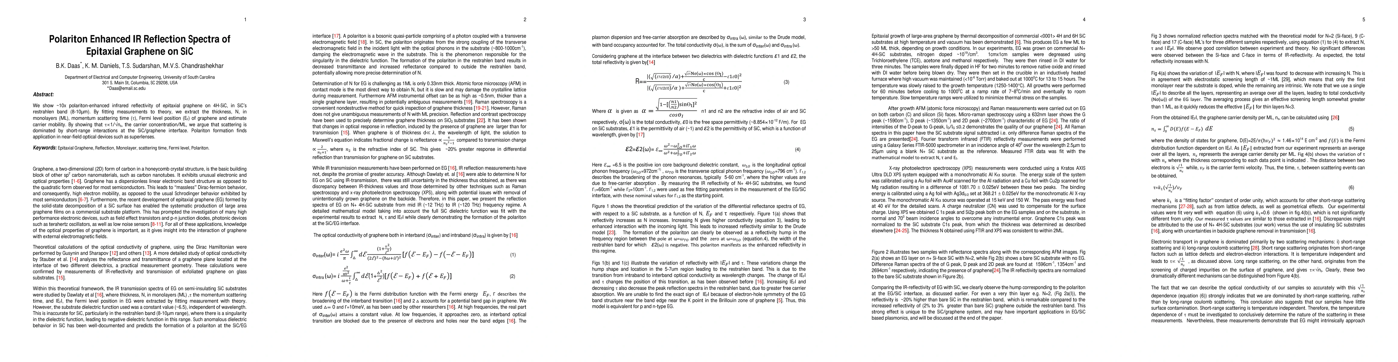 We show ~10x polariton-enhanced infrared reflectivity of epitaxial graphene on 4H-SiC, in SiC's restrahlen band (8-10um). By fitting measurements to theory, we extract the thickness, N, in monolayers (ML), momentum scattering time, Fermi level position of graphene and estimate carrier mobility. By showing that 1/root(ns), the carrier concentration/ML, we argue that scattering is dominated by short-range interactions at the SiC/graphene interface. Polariton formation finds application in near-field optical devices such as superlenses.
