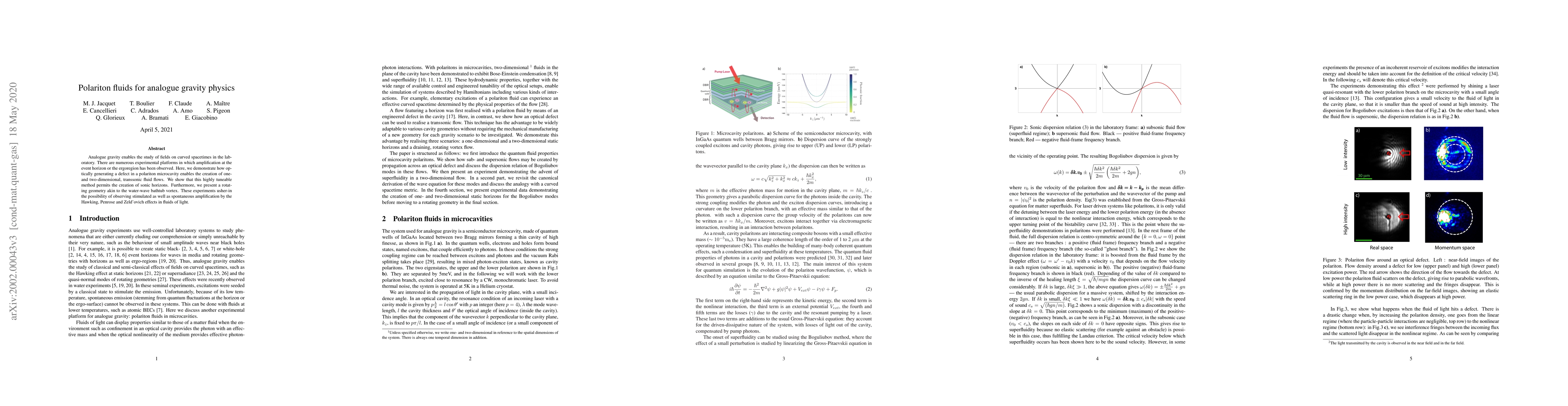 This paper demonstrates the creation of transsonic fluid flows in polariton microcavities, enabling the study of analogue gravity phenomena such as sonic horizons and rotating geometries akin to water-wave bathtub vortices. The tunable method allows for potential observation of Hawking, Penrose, and Zeld'ovich effects in light-based fluids.