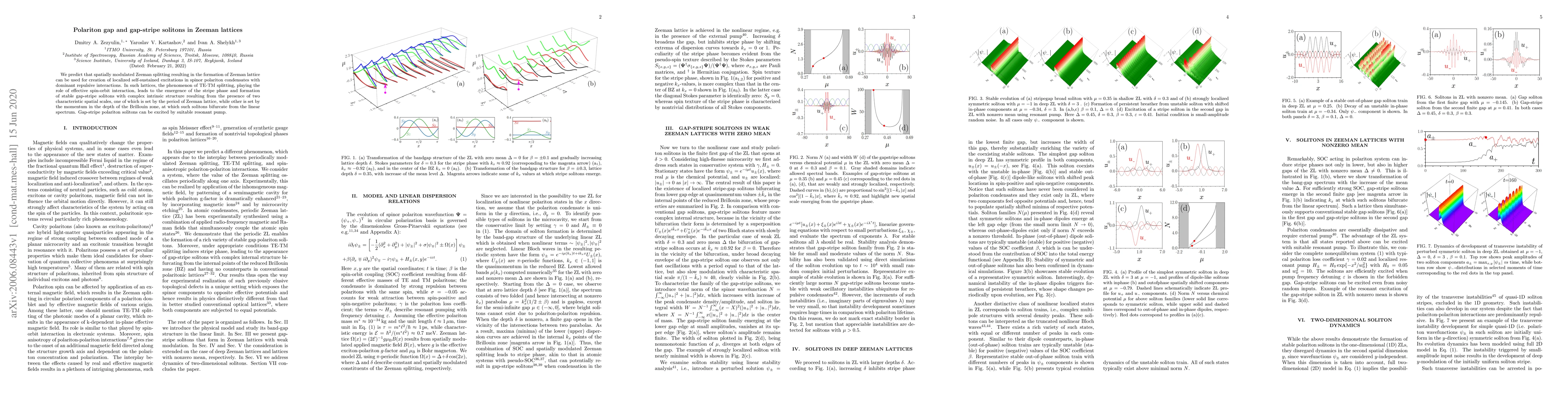 We predict that spatially modulated Zeeman splitting resulting in the formation of Zeeman lattice can be used for creation of localized self-sustained excitations in spinor polariton condensates with dominant repulsive interactions. In such lattices, the phenomenon of TE-TM splitting, playing the role of effective spin-orbit interaction, leads to the emergence of the stripe phase and formation of stable gap-stripe solitons with complex intrinsic structure resulting from the presence of two characteristic spatial scales, one of which is set by the period of Zeeman lattice, while other is set by the momentum in the depth of the Brillouin zone, at which such solitons bifurcate from the linear spectrum. Gap-stripe polariton solitons can be excited by suitable resonant pump.