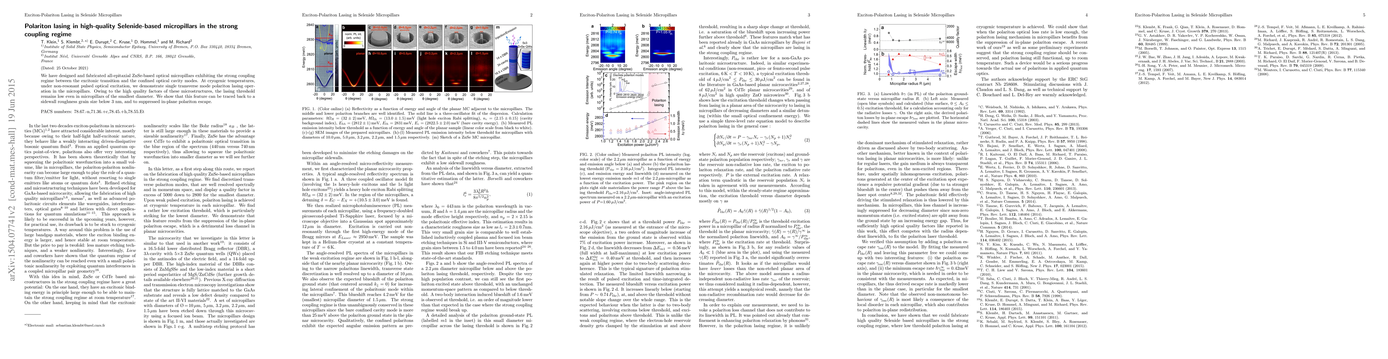 This paper reports on the design and fabrication of high-quality ZnSe-based optical micropillars that exhibit strong coupling between excitons and cavity modes, leading to single transverse mode polariton lasing at cryogenic temperatures. The low lasing threshold is attributed to microstructures with sidewall roughness below 3 nm and minimized polariton escape.
