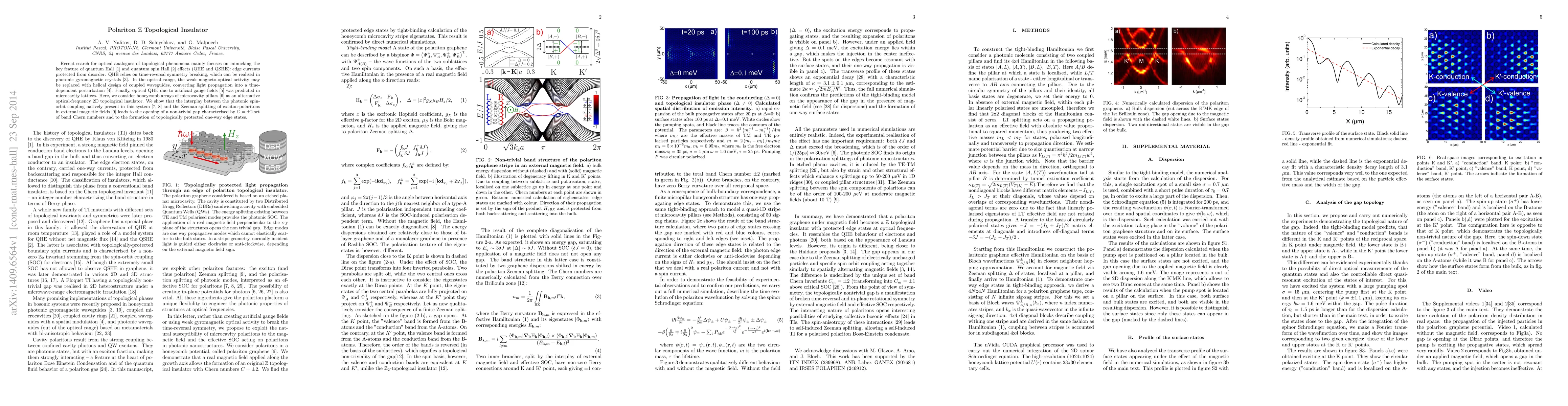 Recent search for optical analogues of topological phenomena mainly focuses on mimicking the key feature of quantum Hall and quantum spin Hall effects (QHE and QSHE): edge currents protected from disorder. QHE relies on time-reversal symmetry breaking, which can be realised in photonic gyromagnetic crystals. In the optical range, the weak magneto-optical activity may be replaced with helical design of coupled waveguides, converting light propagation into a time-dependent perturbation. Finally, optical QHE due to artificial gauge fields was predicted in microcavity lattices. Here, we consider honeycomb arrays of microcavity pillars as an alternative optical-frequency 2D topological insulator. We show that the interplay between the photonic spin-orbit coupling natively present in this system and the Zeeman splitting of exciton-polaritons in external magnetic fields leads to the opening of a non-trivial gap characterised by $C=\pm 2$ set of band Chern numbers and to the formation of topologically protected one-way edge states.