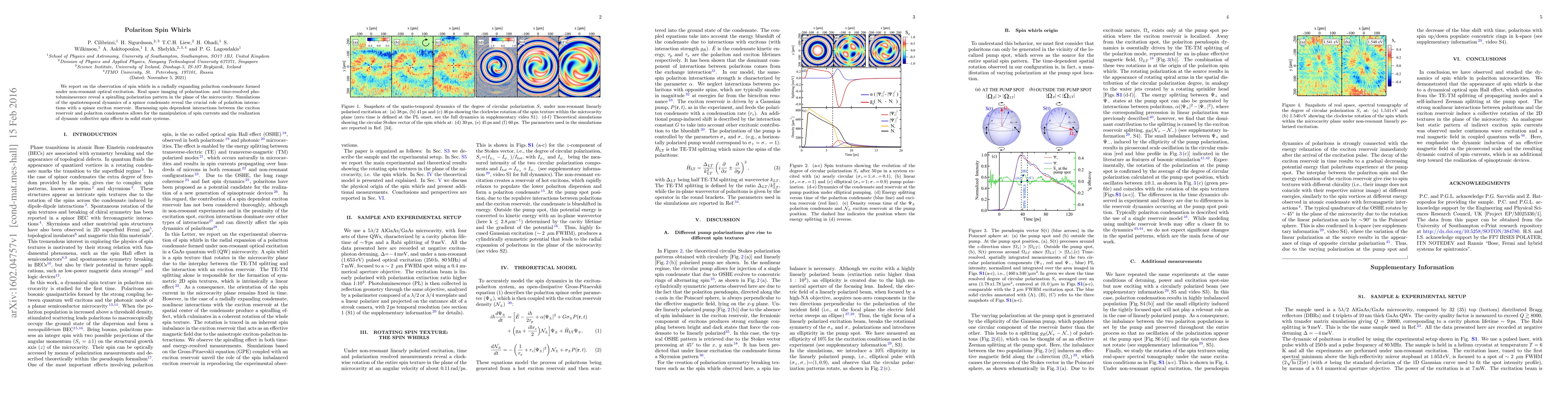 The paper presents a detailed analysis of spin whirls in polariton condensates, highlighting the role of polariton-exciton reservoir interactions in generating dynamic spin textures.