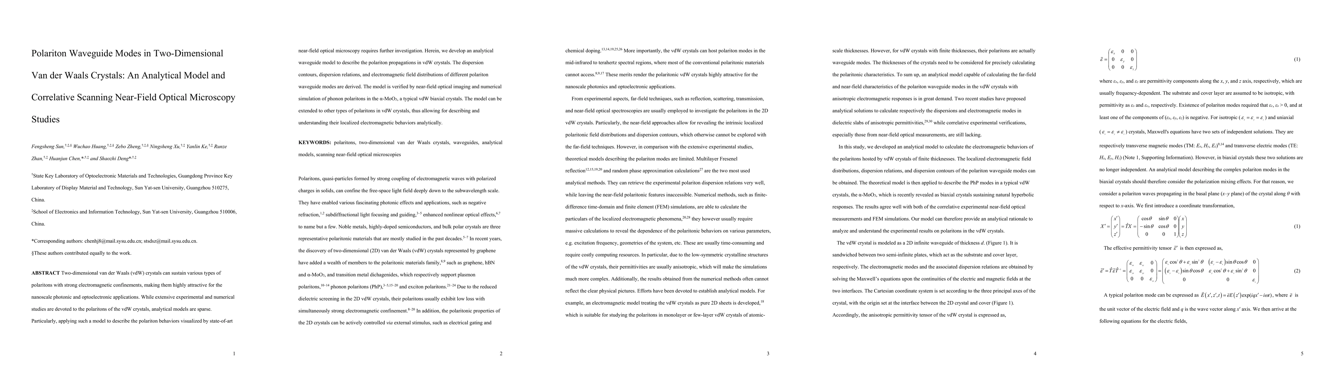 This paper develops an analytical model to describe polariton waveguide modes in two-dimensional van der Waals crystals, focusing on phonon polaritons in α-MoO3. The model's accuracy is validated through near-field optical microscopy and numerical simulations, providing insights into the electromagnetic behaviors of polaritons.