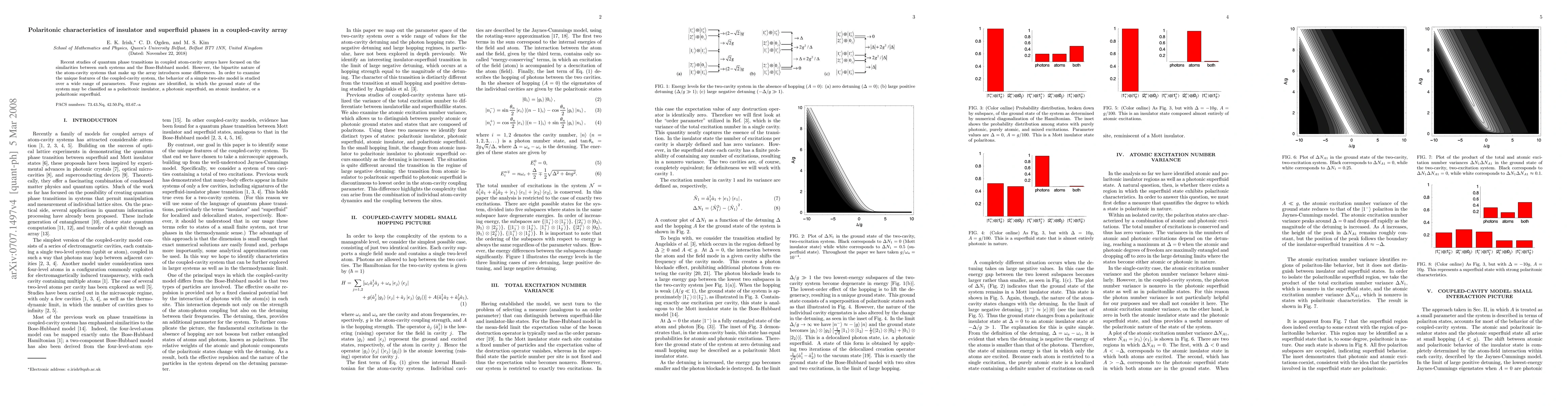 This paper investigates the quantum phase transitions in a coupled-cavity array, identifying four distinct ground state phases: polaritonic insulator, photonic superfluid, atomic insulator, and polaritonic superfluid, highlighting unique features compared to the Bose-Hubbard model.