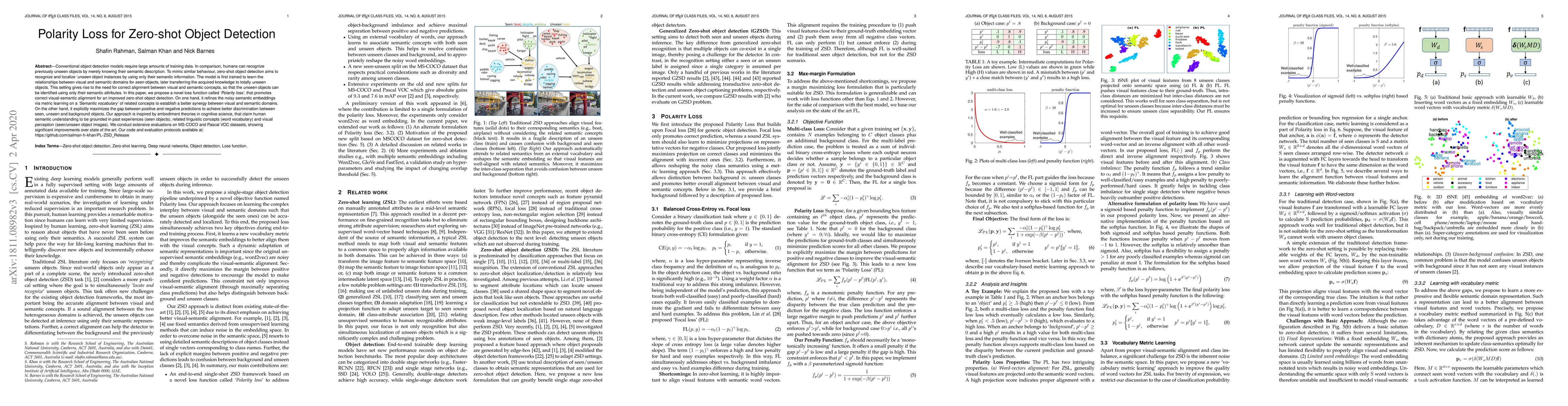 Researchers propose a new loss function called Polarity Loss to improve zero-shot object detection, which recognizes objects based on their semantic descriptions, achieving significant improvements over state-of-the-art methods on MS-COCO and Pascal VOC datasets.