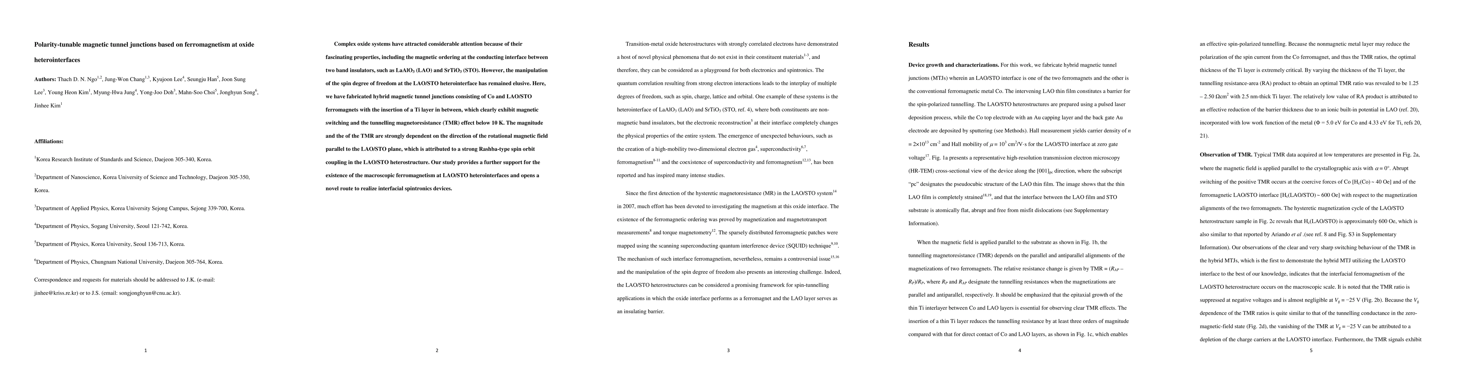 Researchers have successfully created magnetic tunnel junctions with a strong spin-orbit coupling effect at the LaAlO3/SrTiO3 interface, enabling polarity-tunable magnetoresistance and opening new possibilities for interfacial spintronics devices.