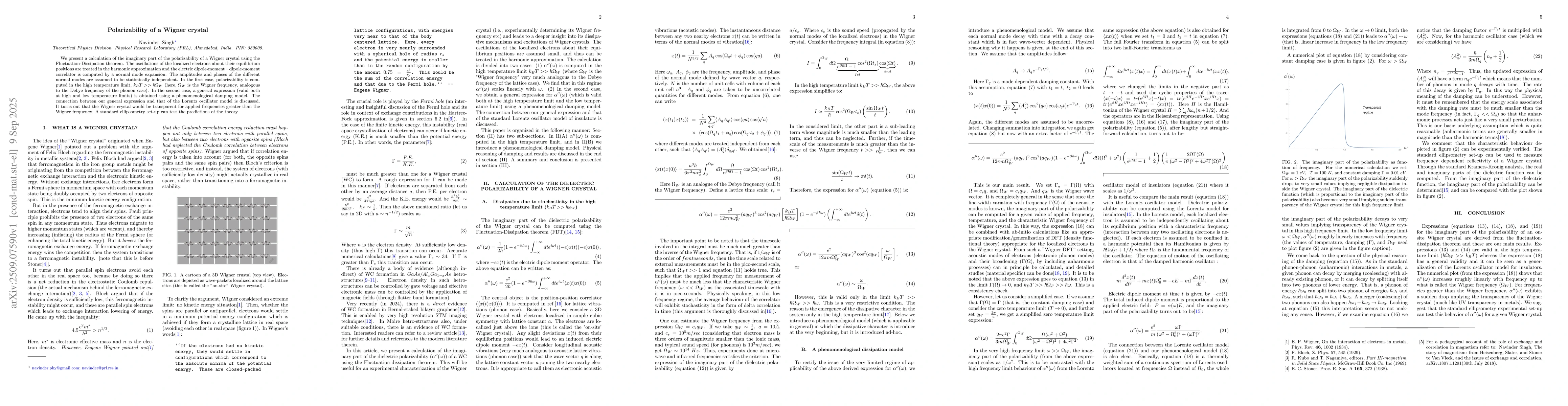We present a calculation of the imaginary part of the polarizability of a Wigner crystal using the Fluctuation-Dissipation theorem. The oscillations of the localized electrons about their equilibrium positions are treated in the harmonic approximation and the electric dipole-moment -- dipole-moment correlator is computed by a normal mode expansion. The amplitudes and phases of the different normal modes are assumed to be statistically independent. In the first case, polarizability is computed in the high temperature limit, $k_B T>>\hbar \Omega_W$ (here, $\Omega_W$ is the Wigner frequency, analogous to the Debye frequency of the phonon case). In the second case, a general expression (valid both at high and low temperature limits) is obtained using a phenomenological damping model. The connection between our general expression and that of the Lorentz oscillator model is discussed. It turns out that the Wigner crystal would be transparent for applied frequencies greater than the Wigner frequency. A standard ellipsometry set-up can test the predictions of the theory.