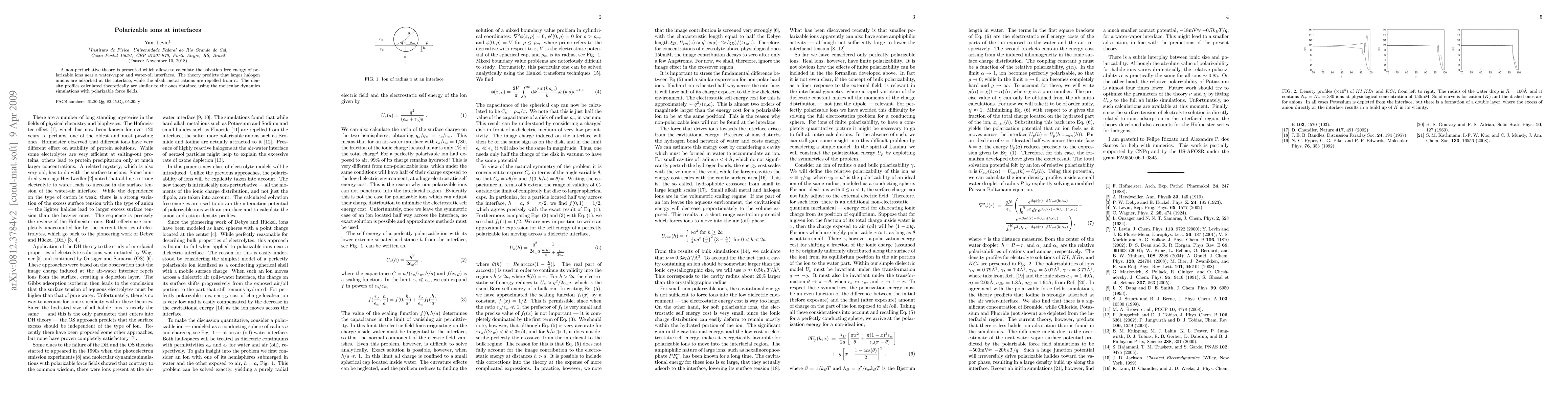 Researchers develop a new theory to calculate solvation free energy of polarizable ions near interfaces with water-vapor and water-oil, predicting larger halogen anions adsorb at the interface while alkali metal cations are repelled.
