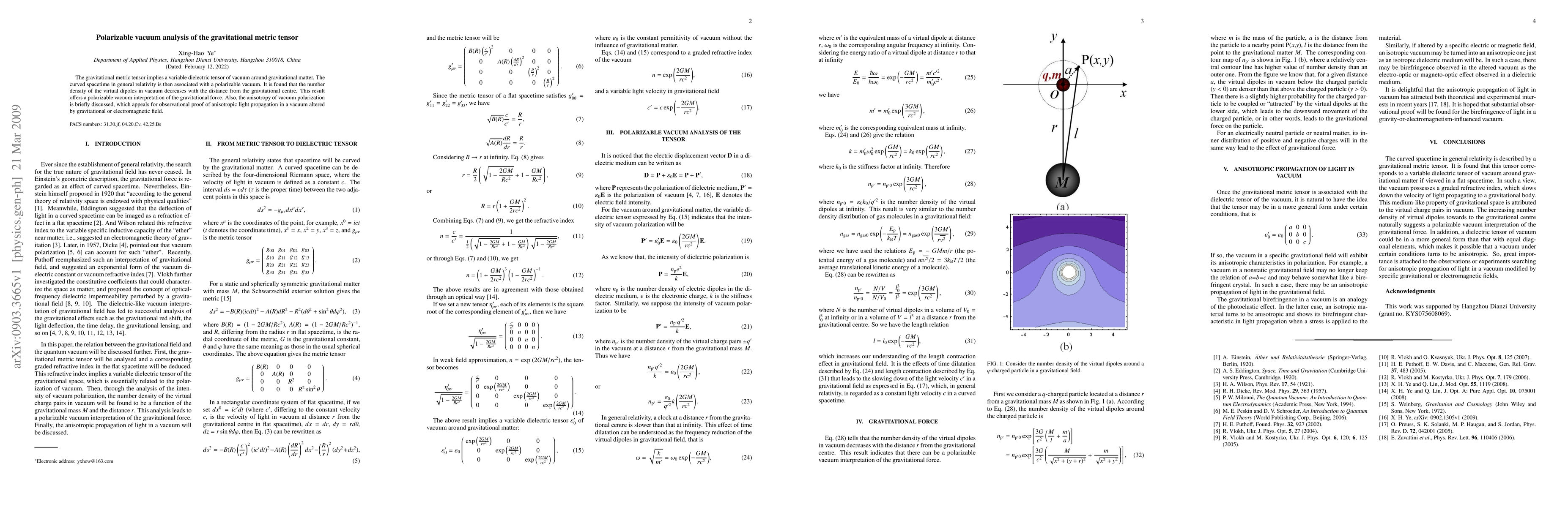 This paper explores how the gravitational metric tensor correlates with a variable dielectric tensor of vacuum, suggesting a polarizable vacuum around gravitational matter. It concludes that the number density of vacuum virtual dipoles diminishes with distance from gravitational centers, providing a new interpretation of gravitational force and briefly discussing potential observational evidence for anisotropic light propagation in such a polarized vacuum.