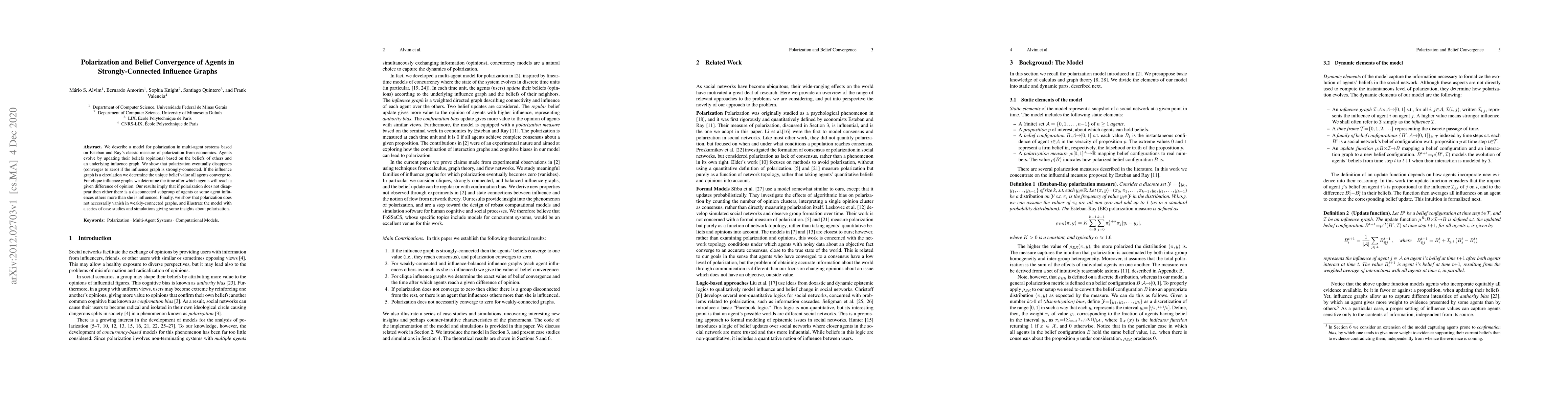 We describe a model for polarization in multi-agent systems based on Esteban and Ray's classic measure of polarization from economics. Agents evolve by updating their beliefs (opinions) based on the beliefs of others and an underlying influence graph. We show that polarization eventually disappears (converges to zero) if the influence graph is strongly-connected. If the influence graph is a circulation we determine the unique belief value all agents converge to. For clique influence graphs we determine the time after which agents will reach a given difference of opinion. Our results imply that if polarization does not disappear then either there is a disconnected subgroup of agents or some agent influences others more than she is influenced. Finally, we show that polarization does not necessarily vanish in weakly-connected graphs, and illustrate the model with a series of case studies and simulations giving some insights about polarization.